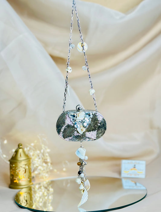Silver Dollar Crystal Clutch