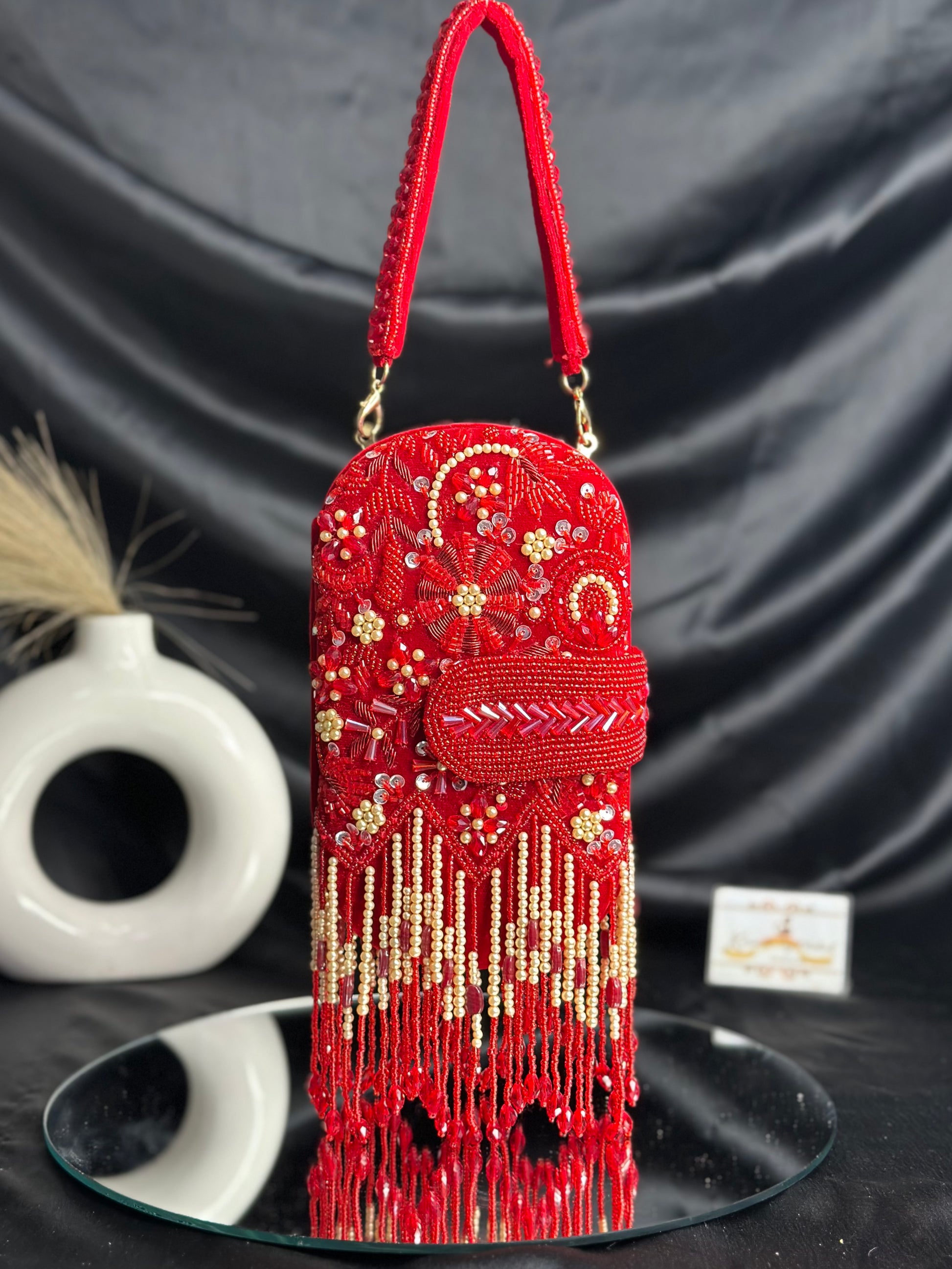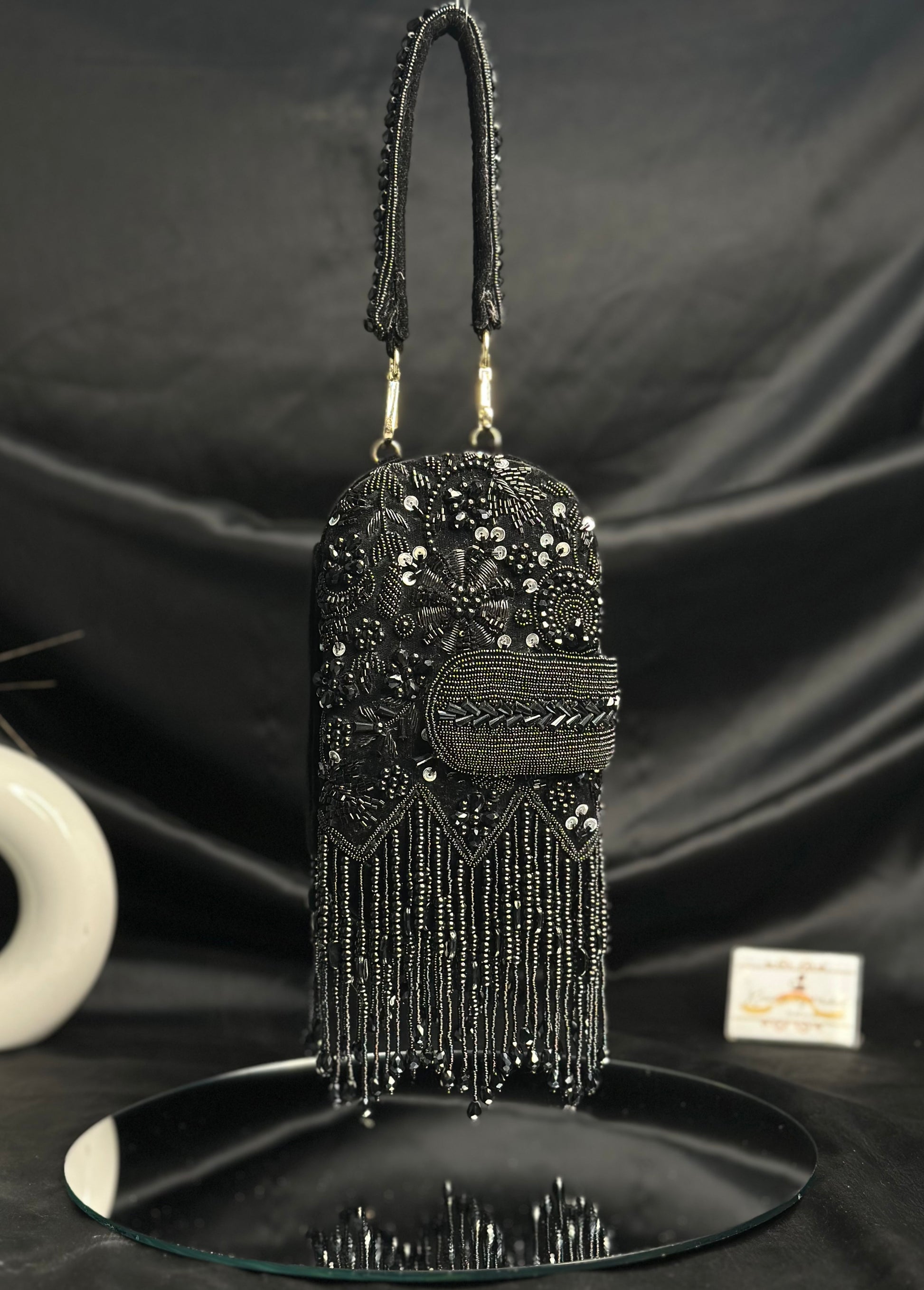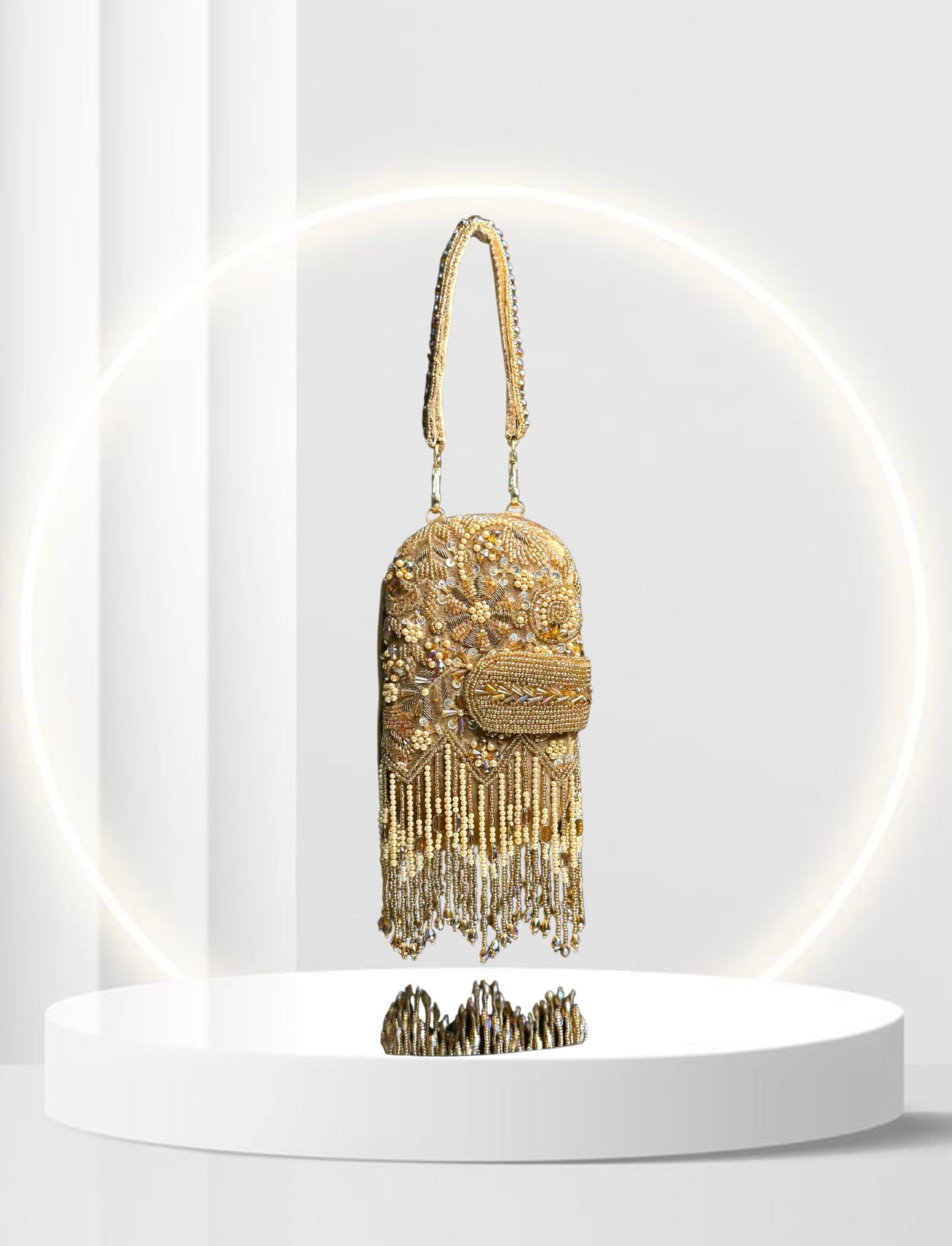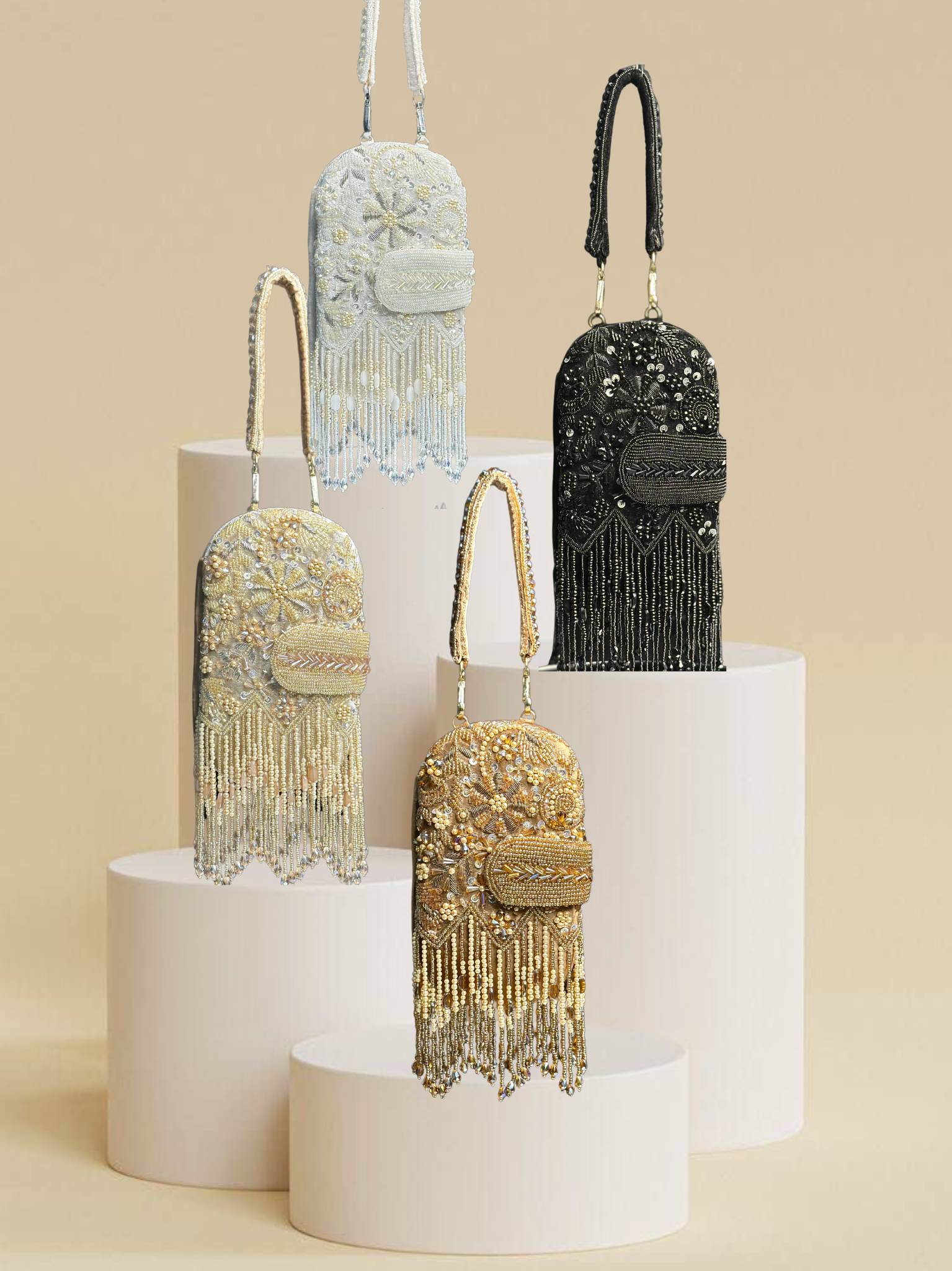 The Celeste Bag is a stylish accessory that combines form and function. Its capsule shape not only adds a trendy touch, but also allows for easy fitting of phones up to 6 inches. Made with premium quality materials, this bag also features fringe and stone detailing for added elegance. Elevate your look and stay organized with Celeste Bag.