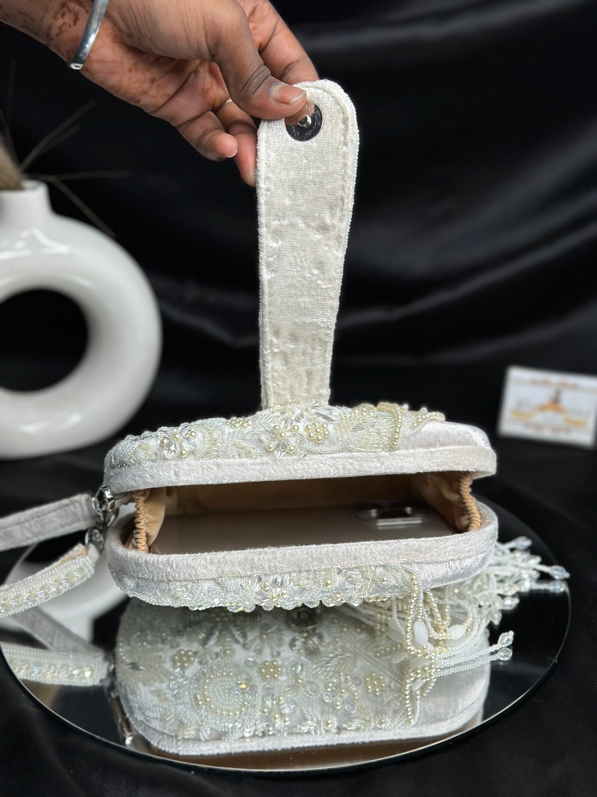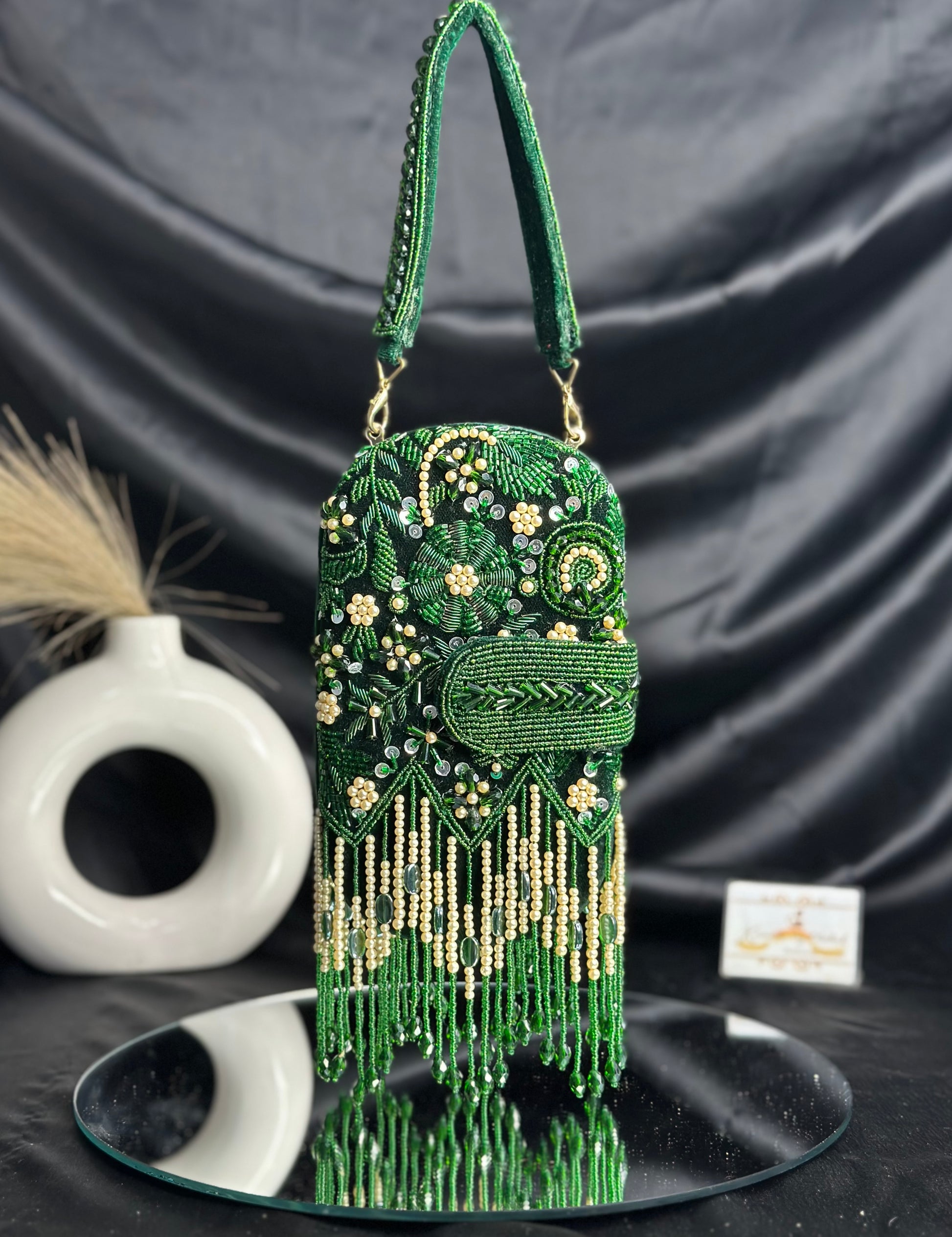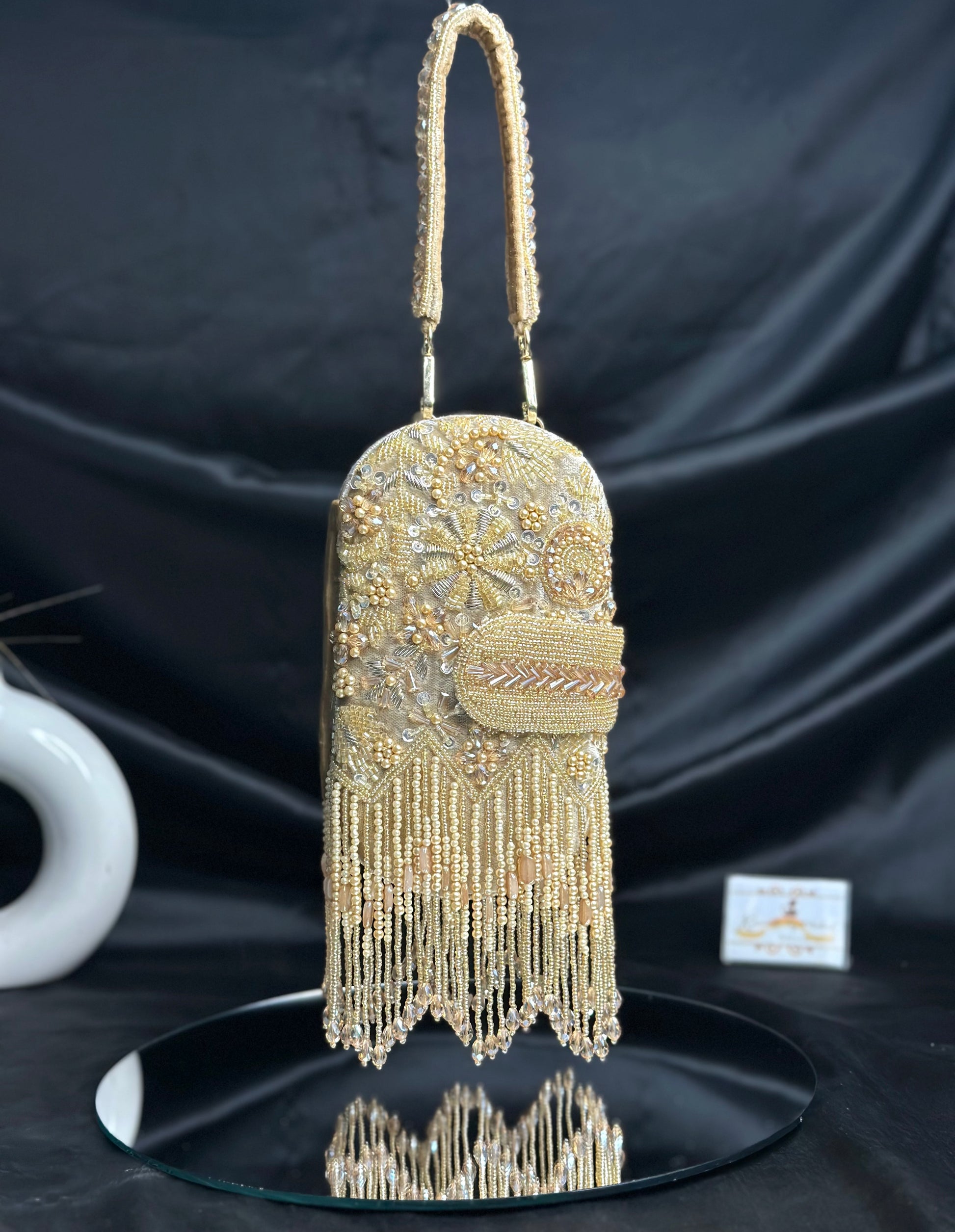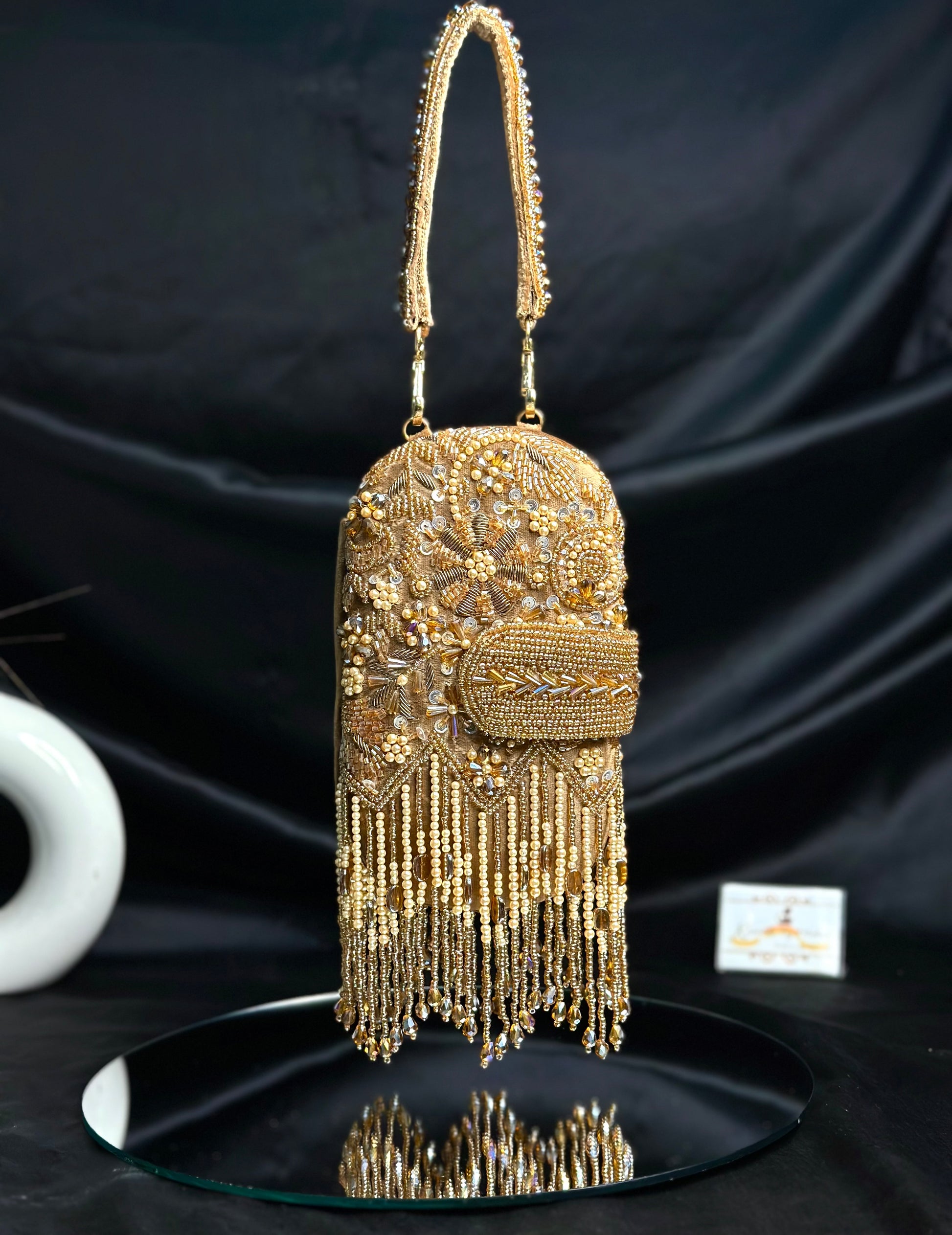 The Celeste Bag is a stylish accessory that combines form and function. Its capsule shape not only adds a trendy touch, but also allows for easy fitting of phones up to 6 inches. Made with premium quality materials, this bag also features fringe and stone detailing for added elegance. Elevate your look and stay organized with Celeste Bag.