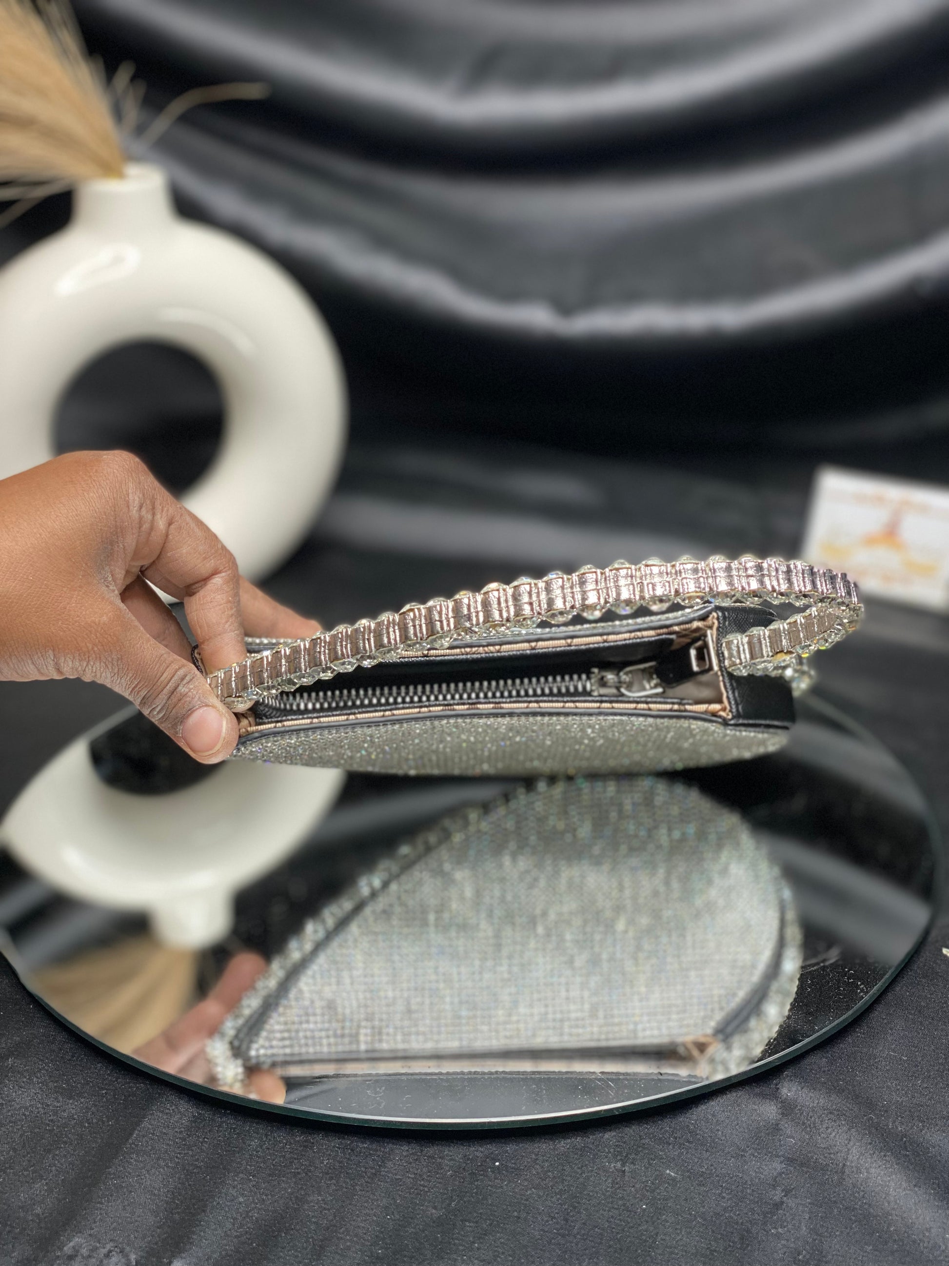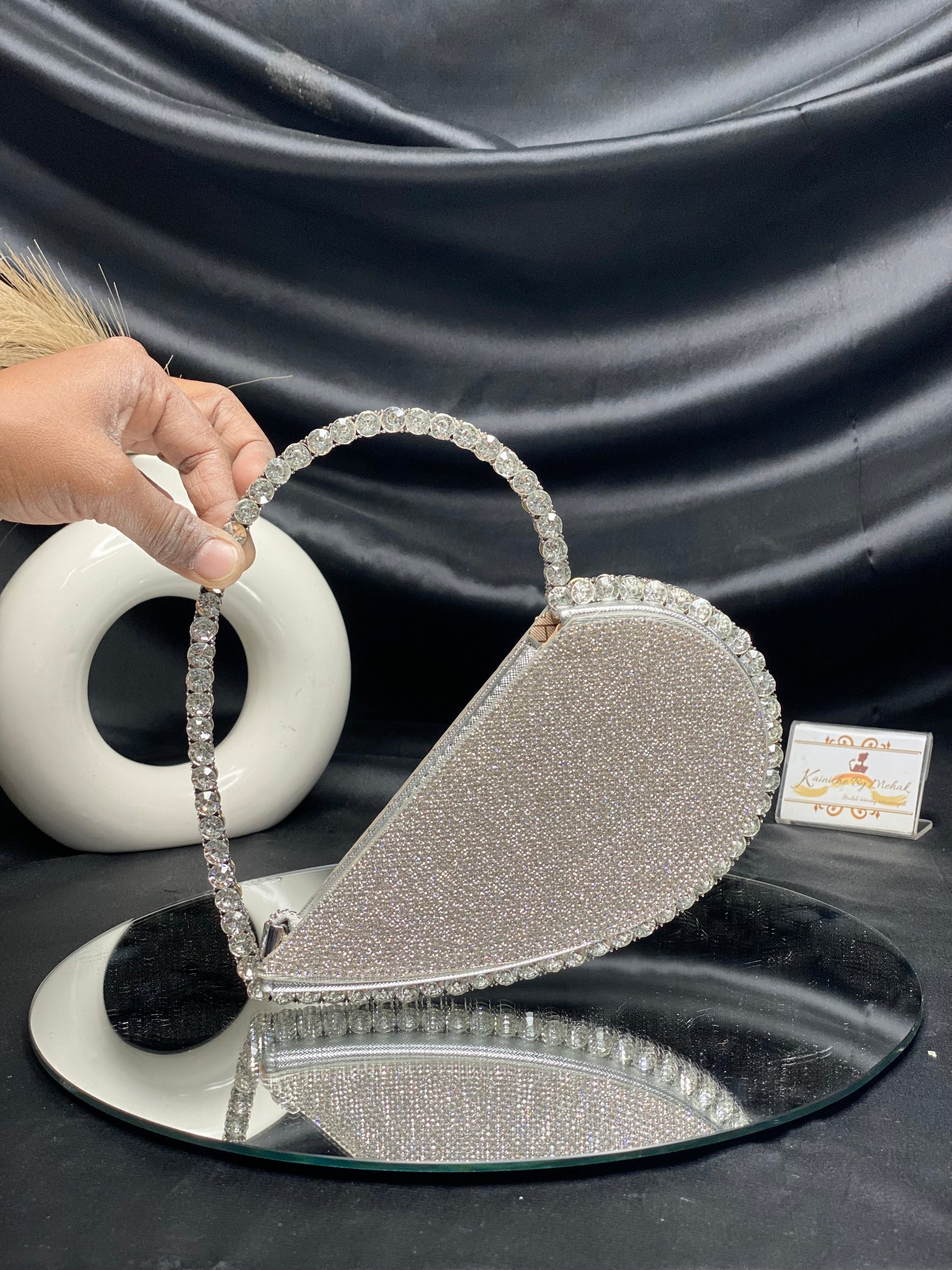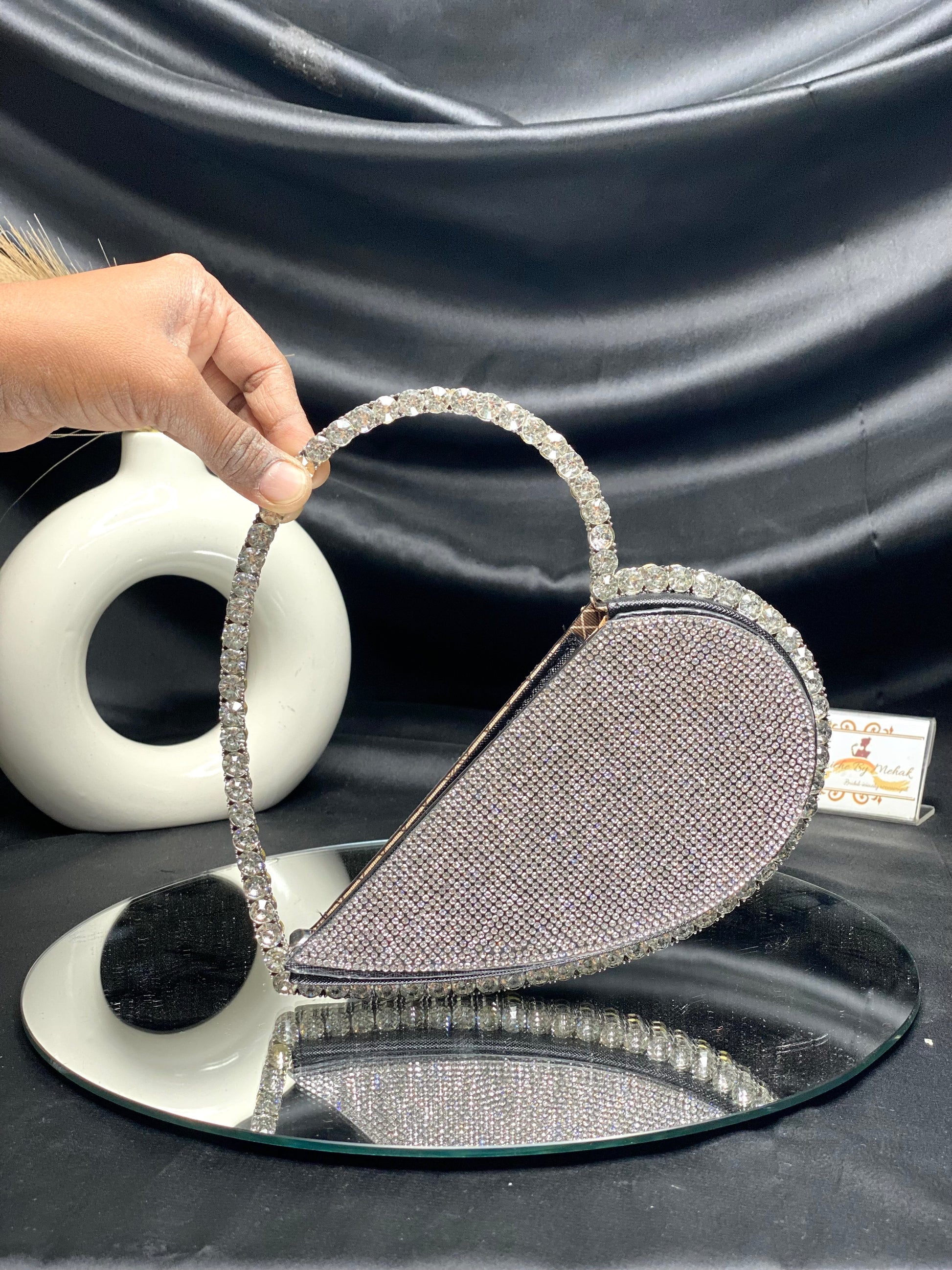 This Glitter Heart Bag is the perfect accessory to add some sparkle to your outfit. Its heart shape and small rhinestone detailing make it stand out, while the diamond stud handle adds a touch of luxury. Not your ordinary bag, it is sure to make a statement.