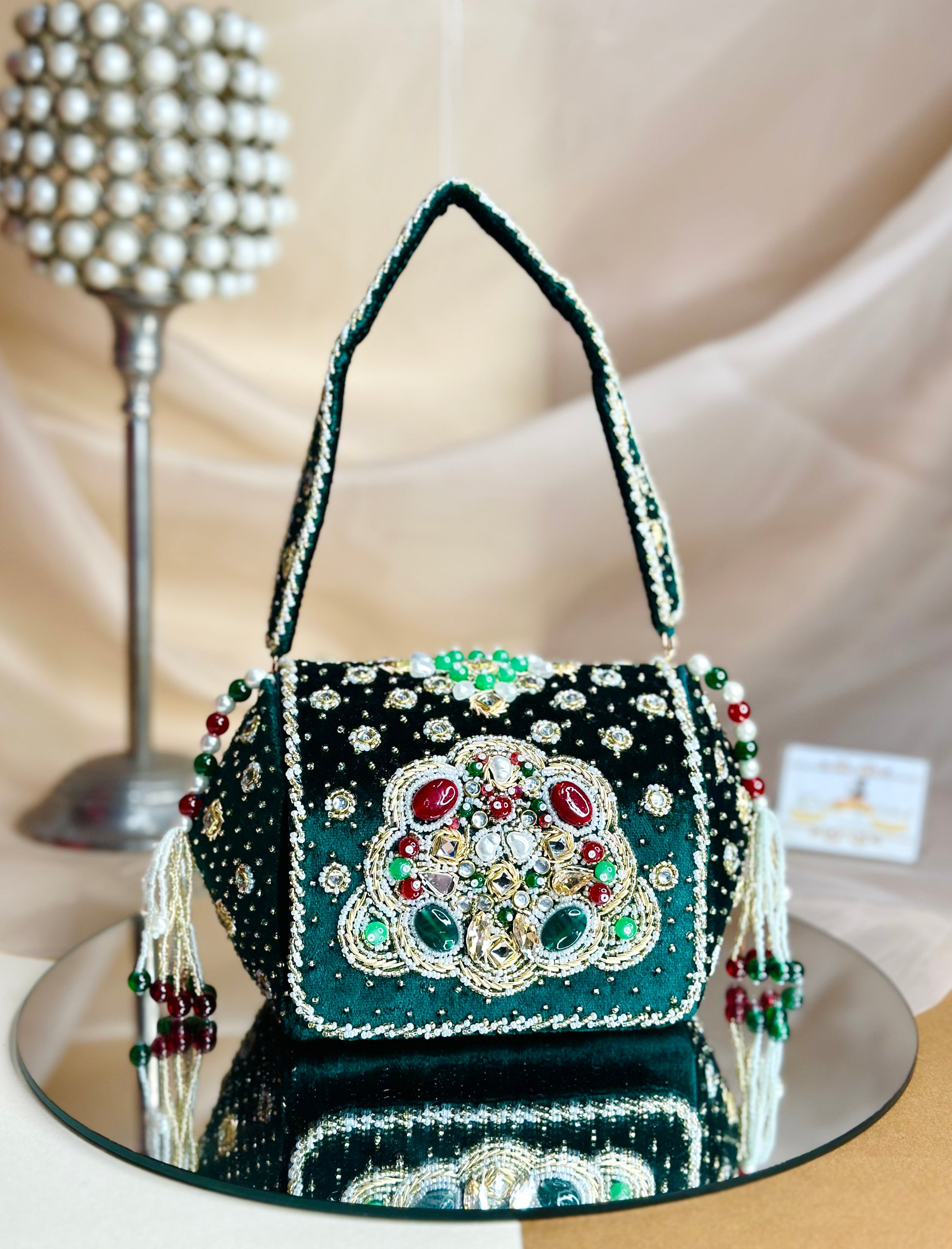 The Jashan Bag stands out with its distinctive shape and intricately crafted design, offering both aesthetic appeal and a statement of refined craftsmanship. Ideal for those who appreciate artistry in accessories, this bag enhances your ensemble with its unique contours and detailed patterns, merging functionality with elevated style.