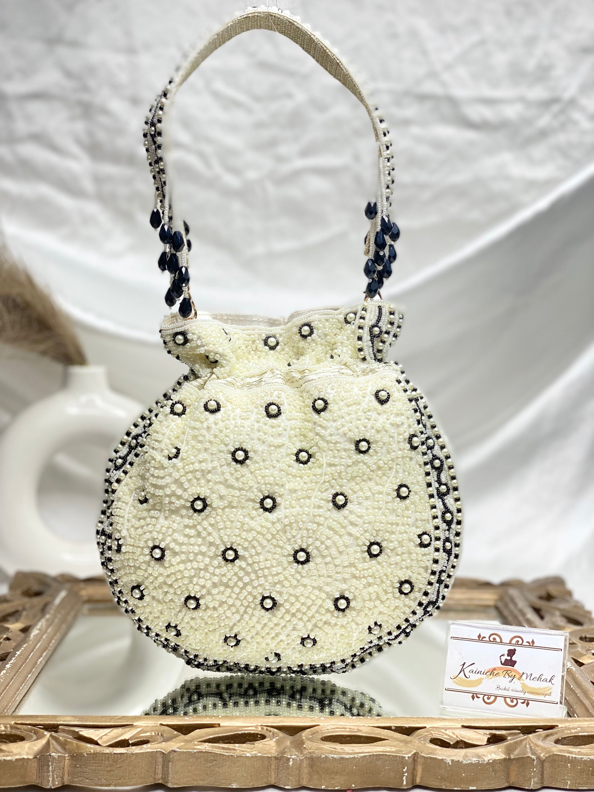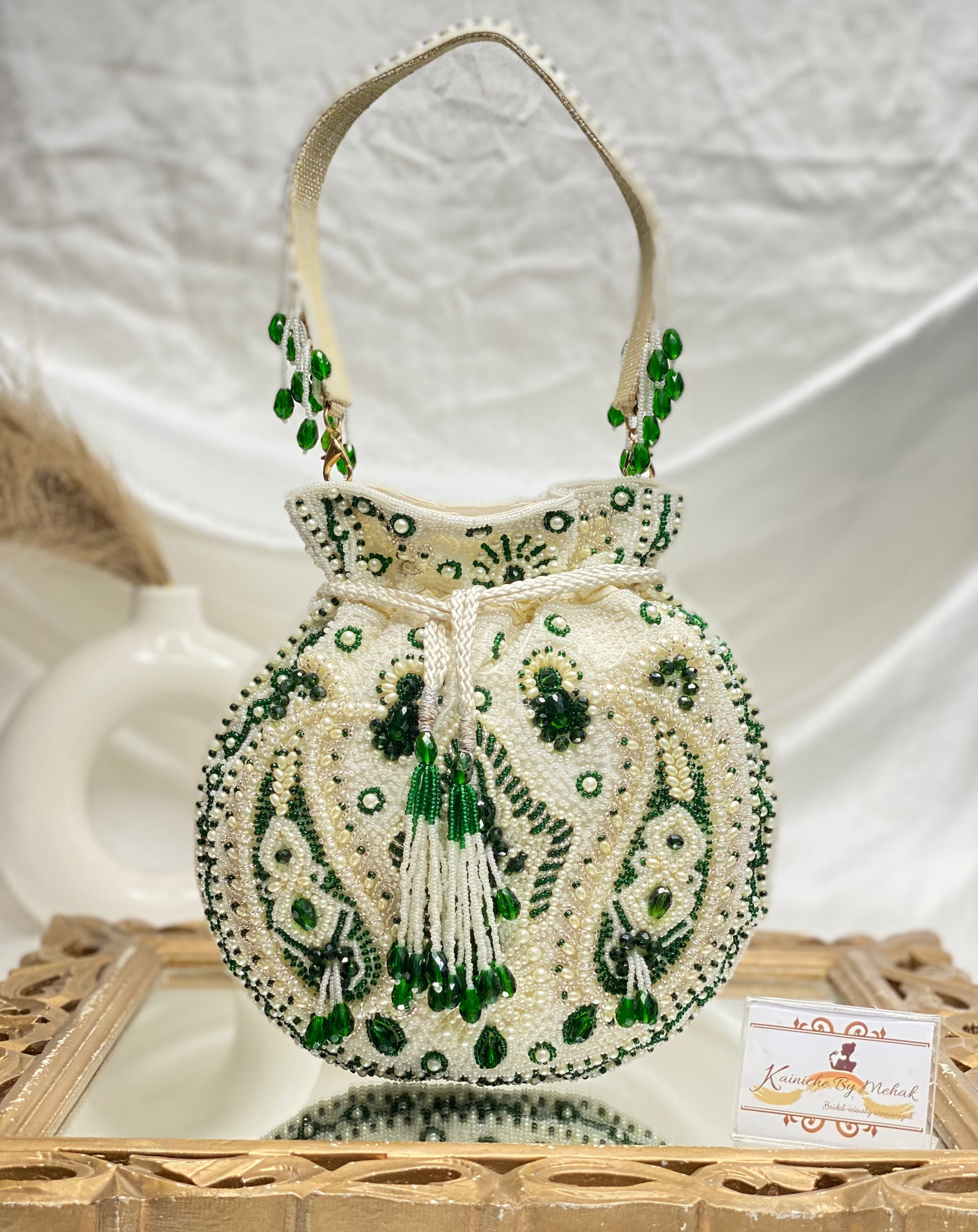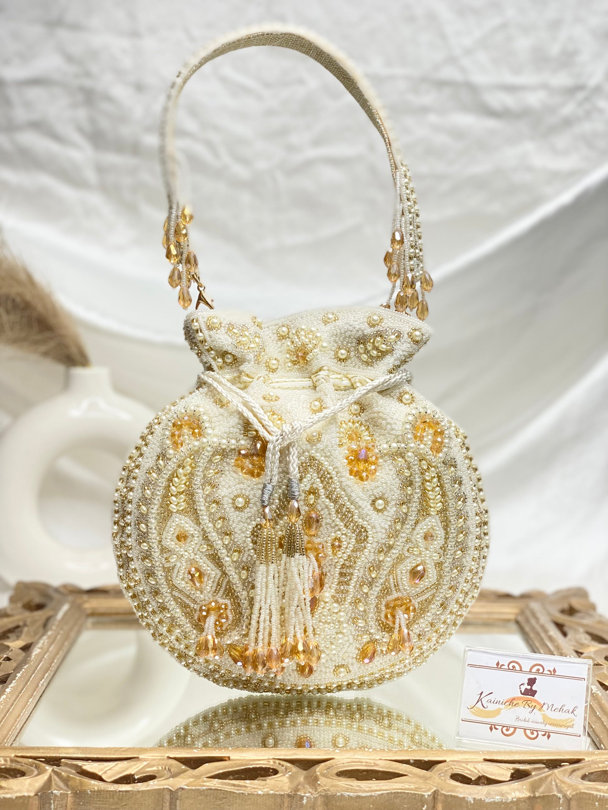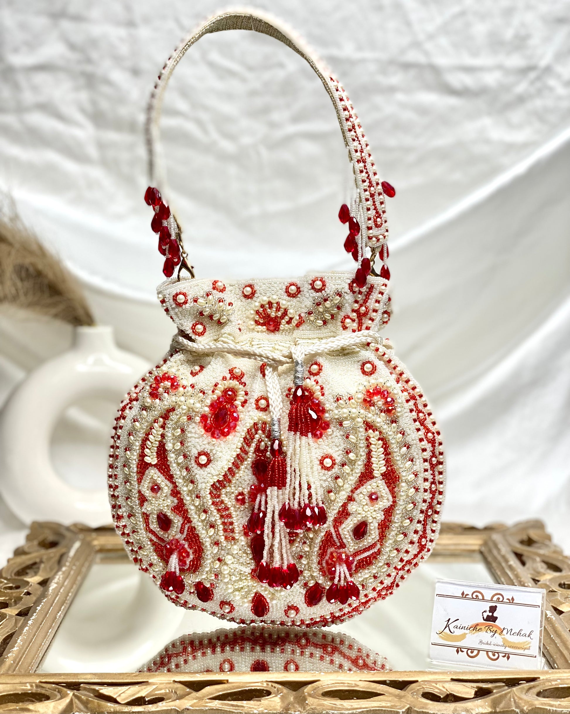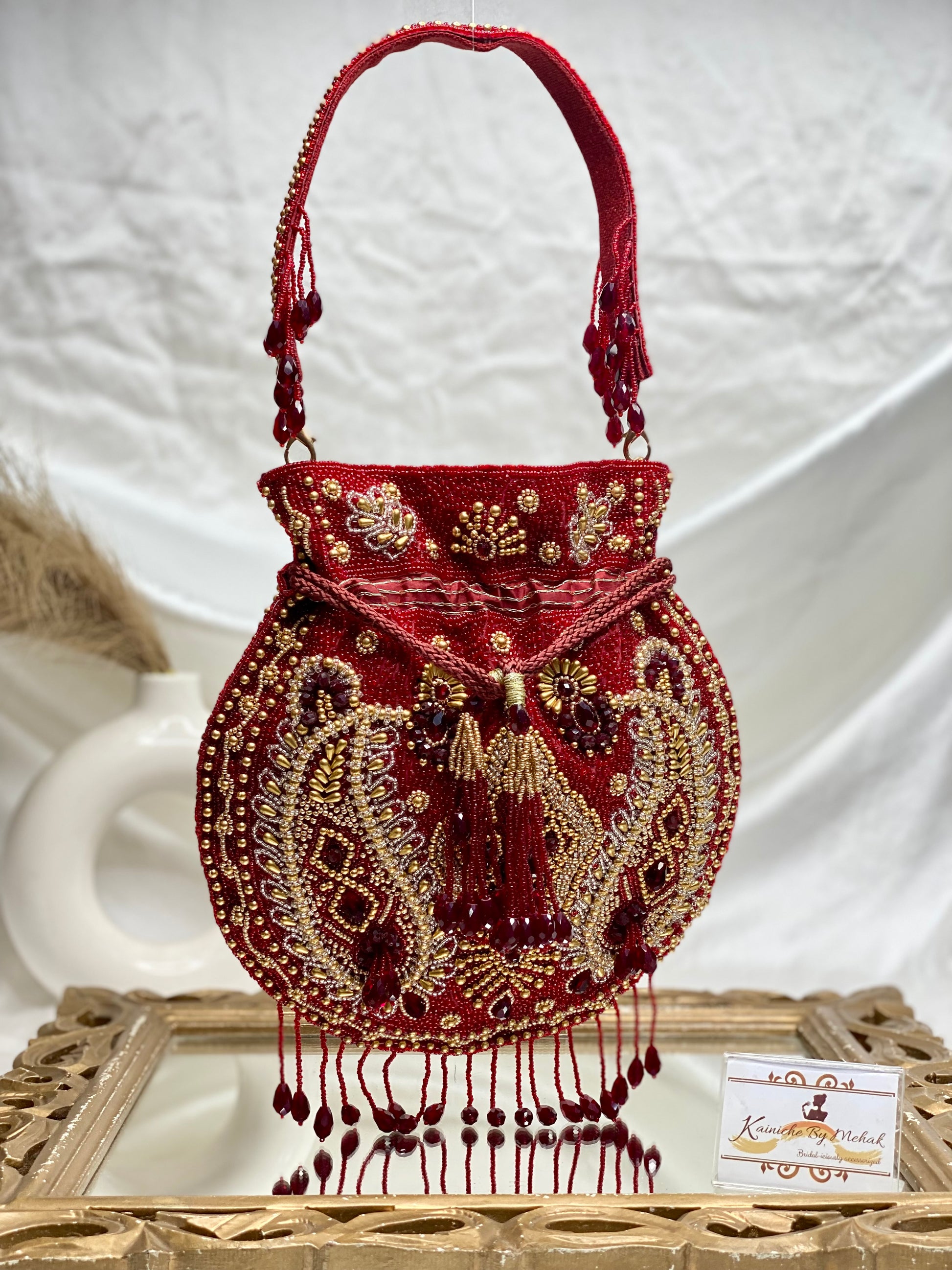 The Meera Potli is a perfect blend of traditional and modern, with its ethnic style and luxurious design. This exquisite accessory is sure to elevate any outfit, while also showcasing your cultural roots. Experience the best of both worlds with the Meera Potli.