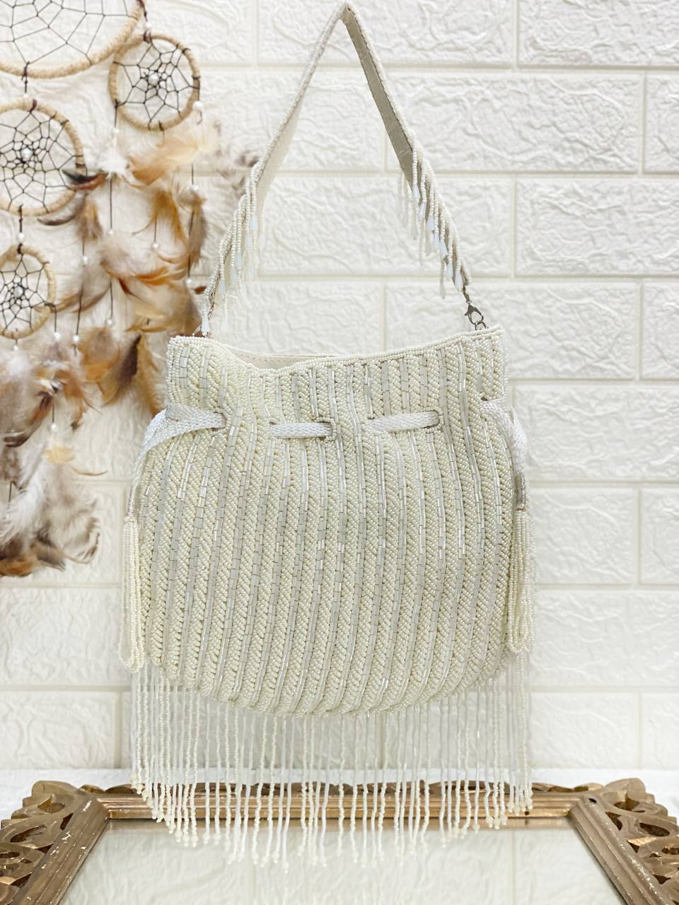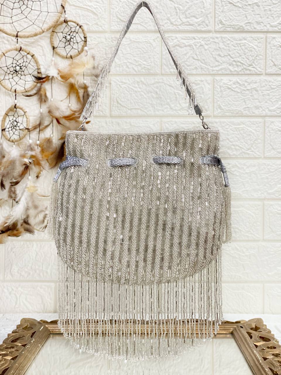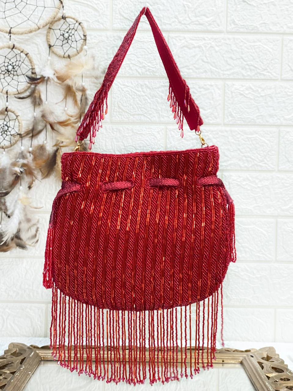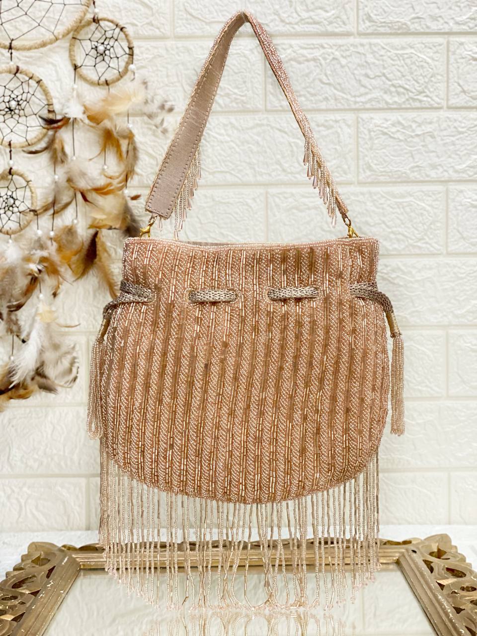 Elevate your style with our exquisite Potli bag, available in stunning colours. Its unique fringes and sequins design add a touch of glamour to any outfit, making it the perfect accessory for any occasion.