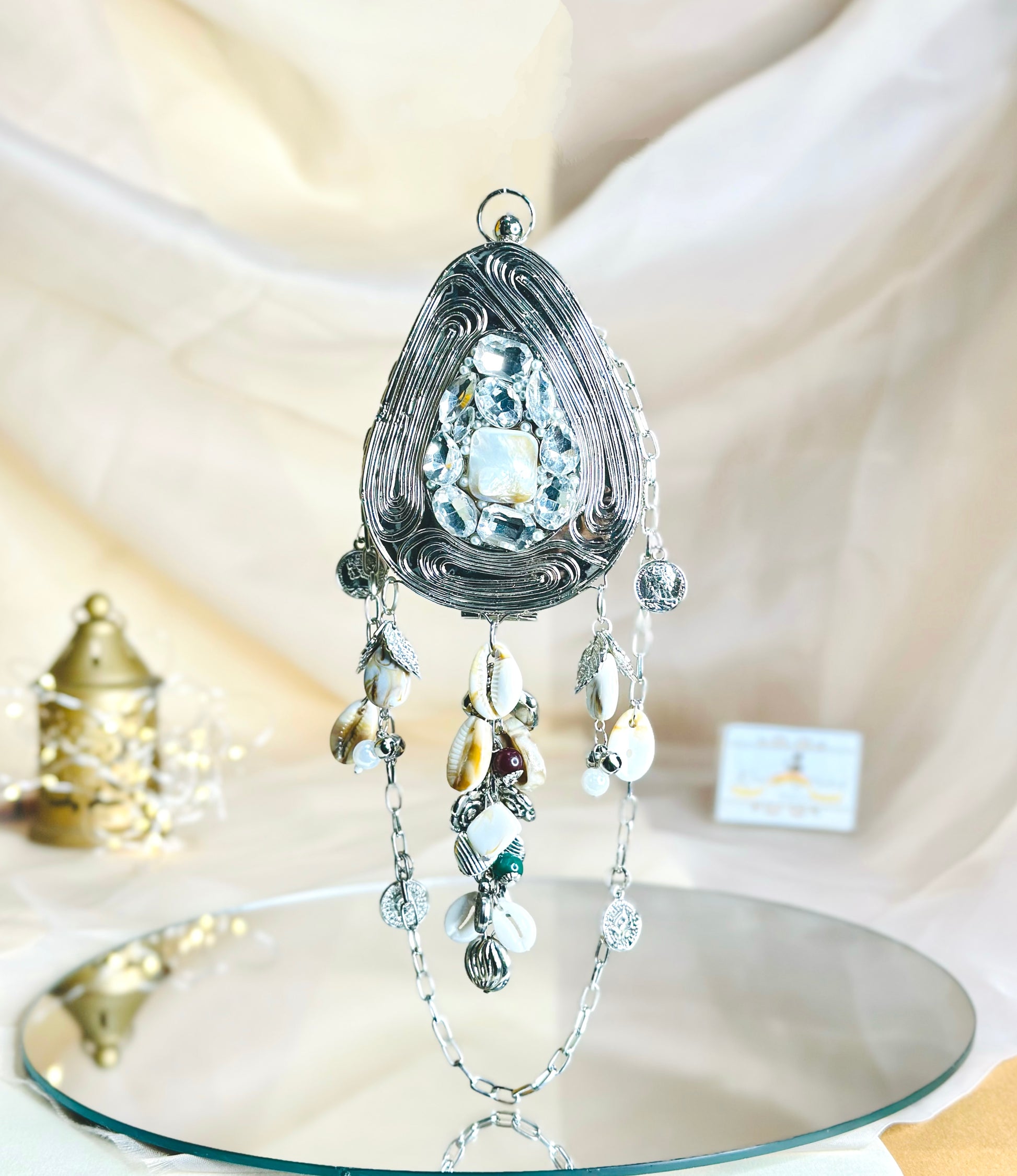 Placement and number/colour of stones and beads may differ depending on the availability.