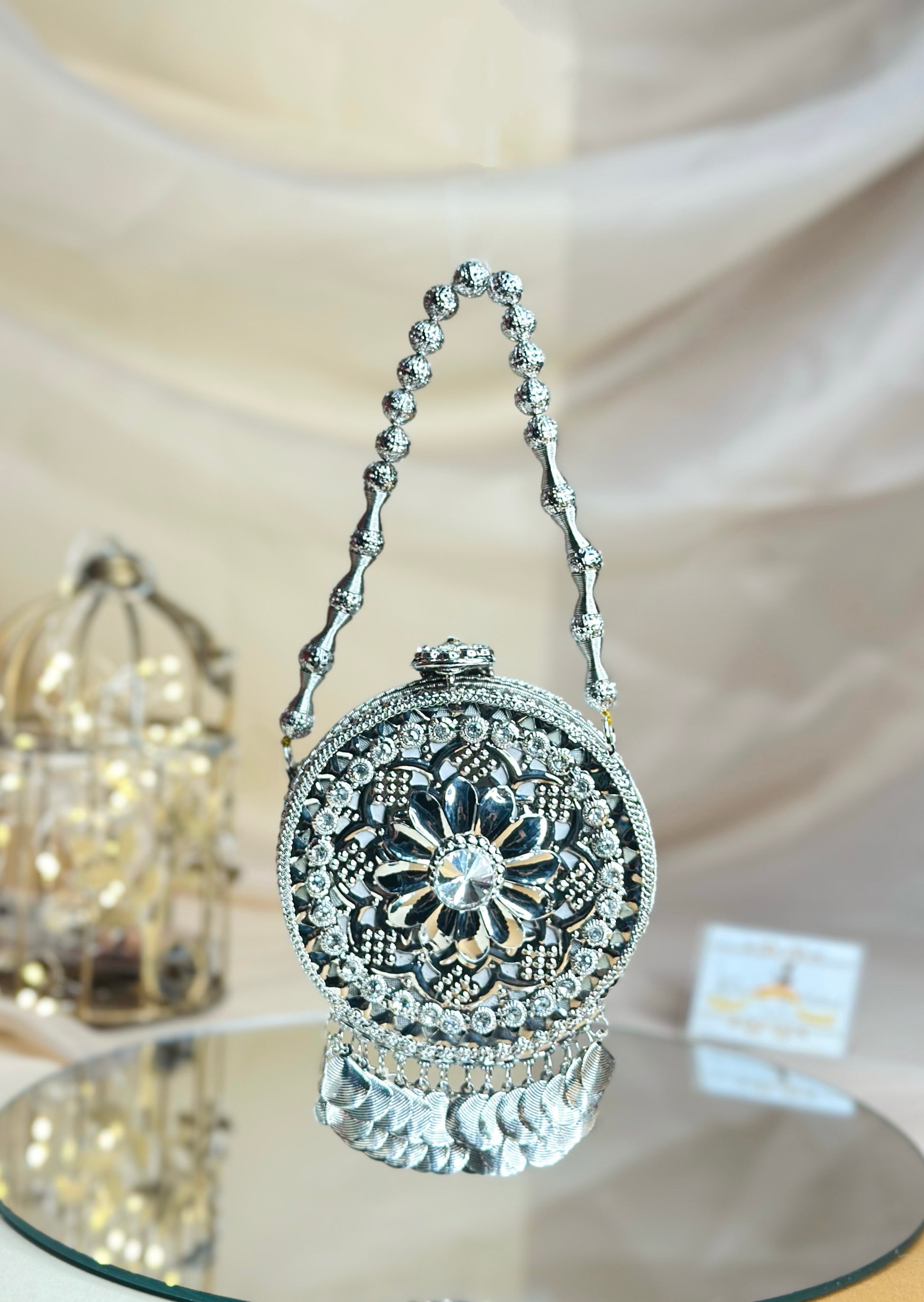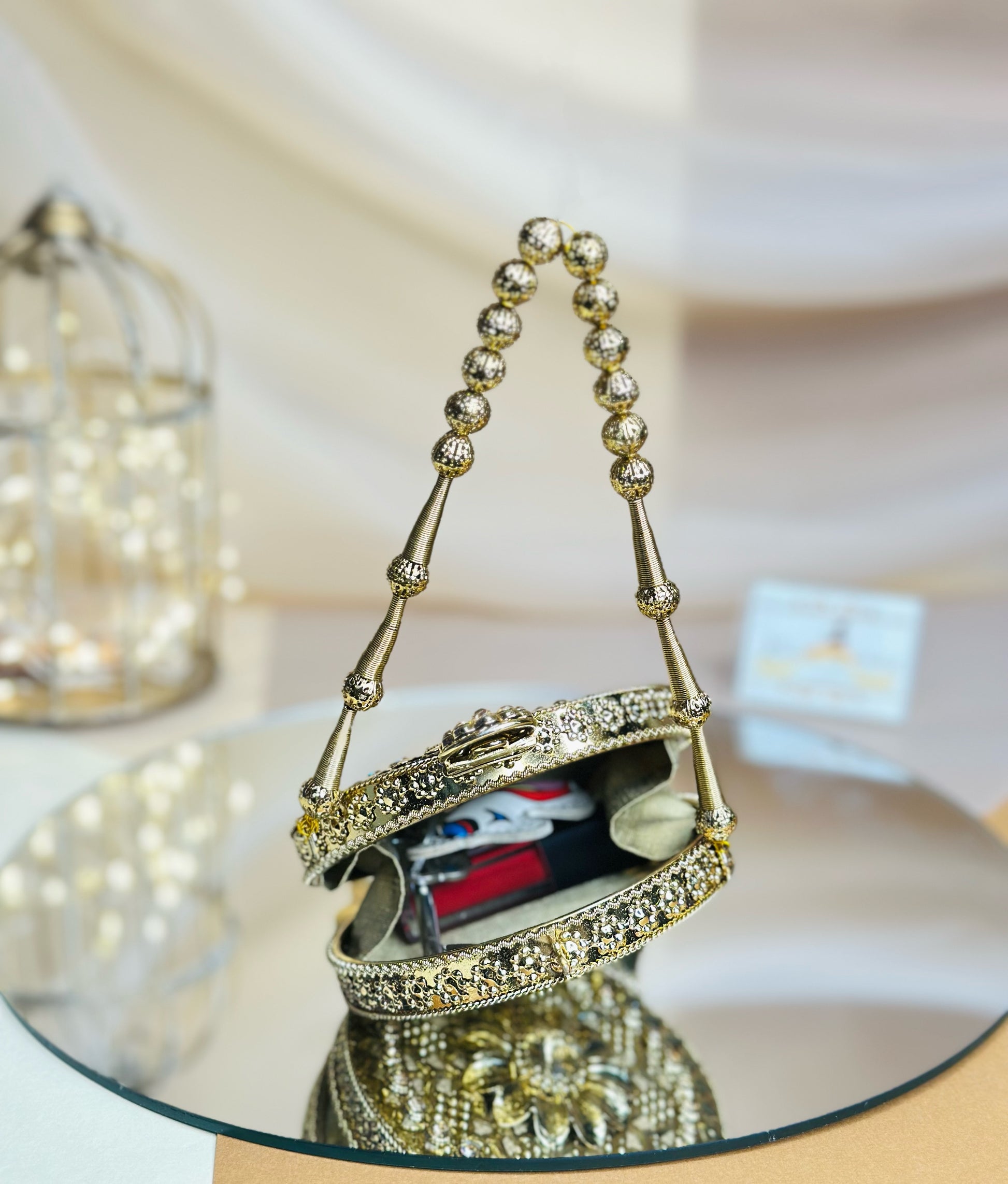 The Alizeh Metal Bag features a distinctive round shape crafted from durable brass, combining elegance with practicality. Its premium material ensures lasting quality while maintaining affordability, making it an excellent choice for those seeking stylish yet accessible accessories. Ideal for adding a refined touch to any outfit, this bag balances sophisticated design with everyday usability.