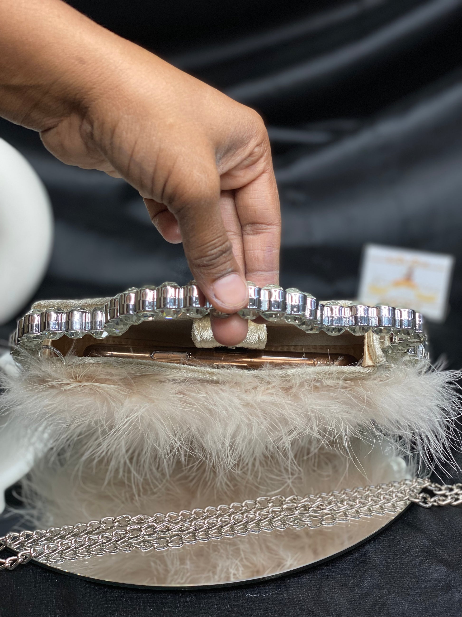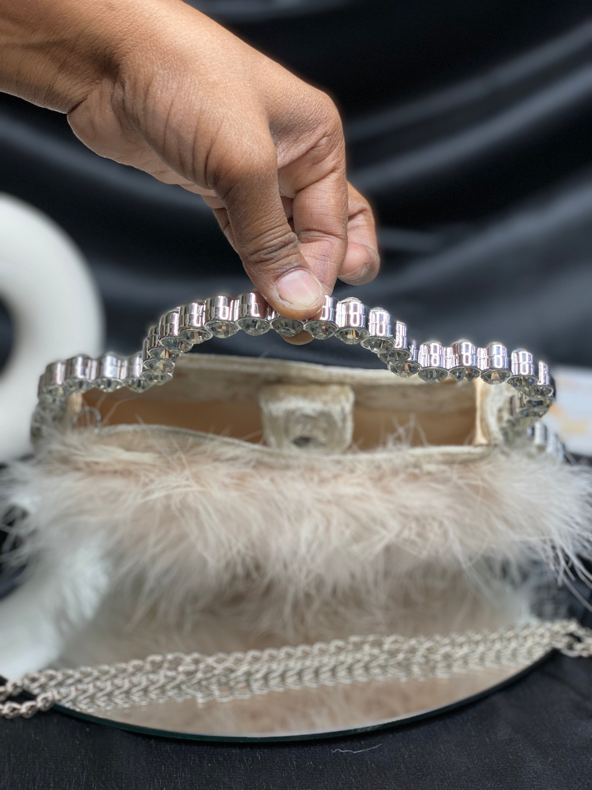 Wrap yourself in plush elegance with this cloud-shaped bag crafted from premium velvet, adorned with luxurious fur accents for a touch of opulence that floats above the rest.