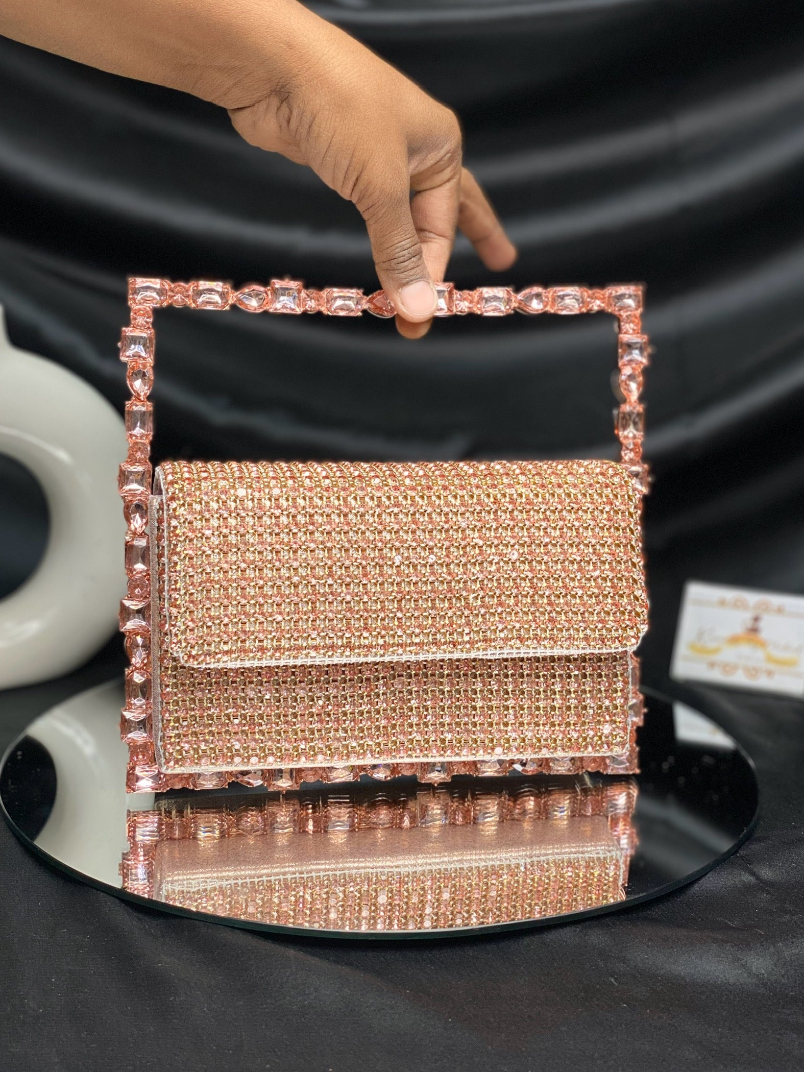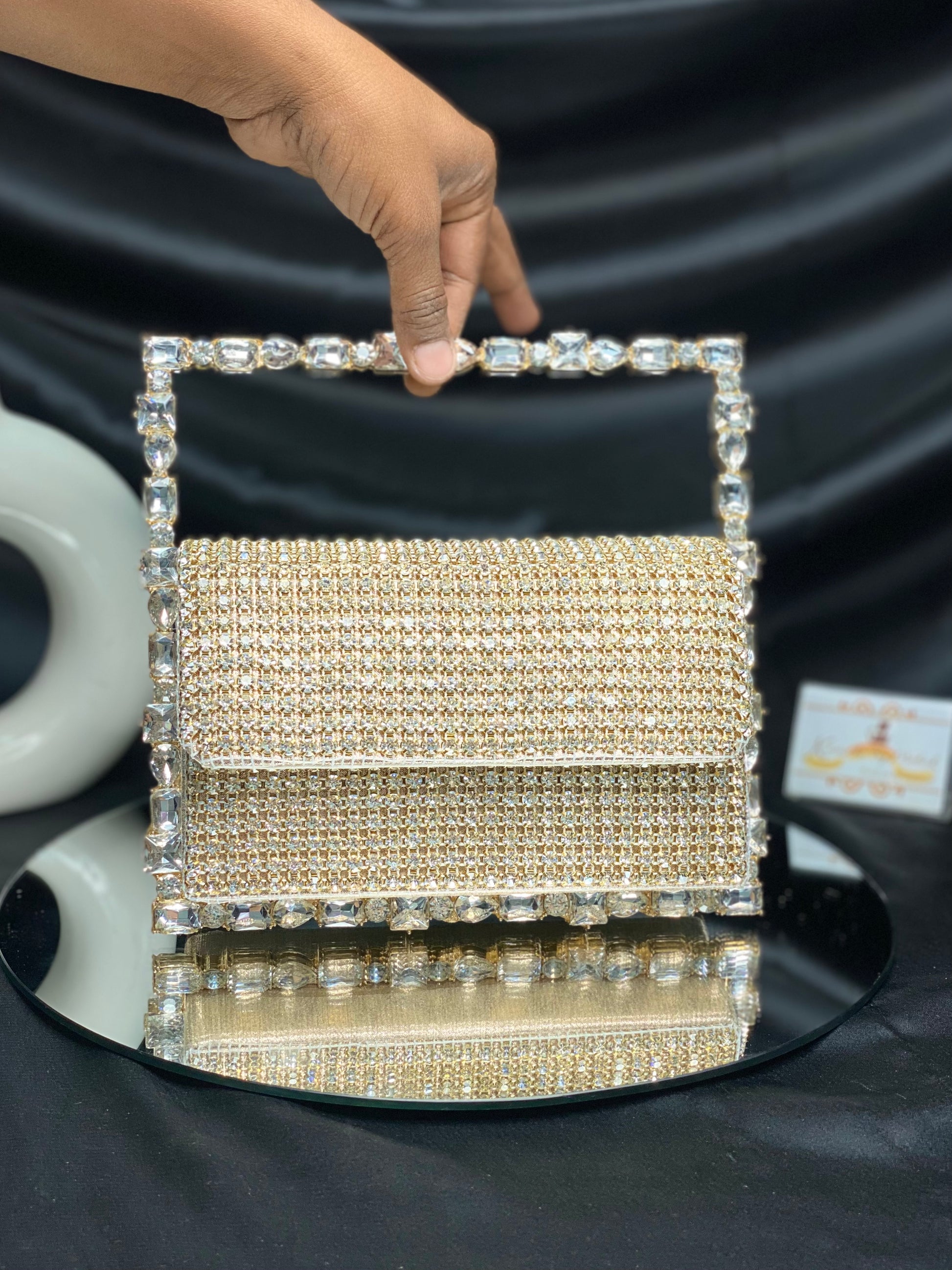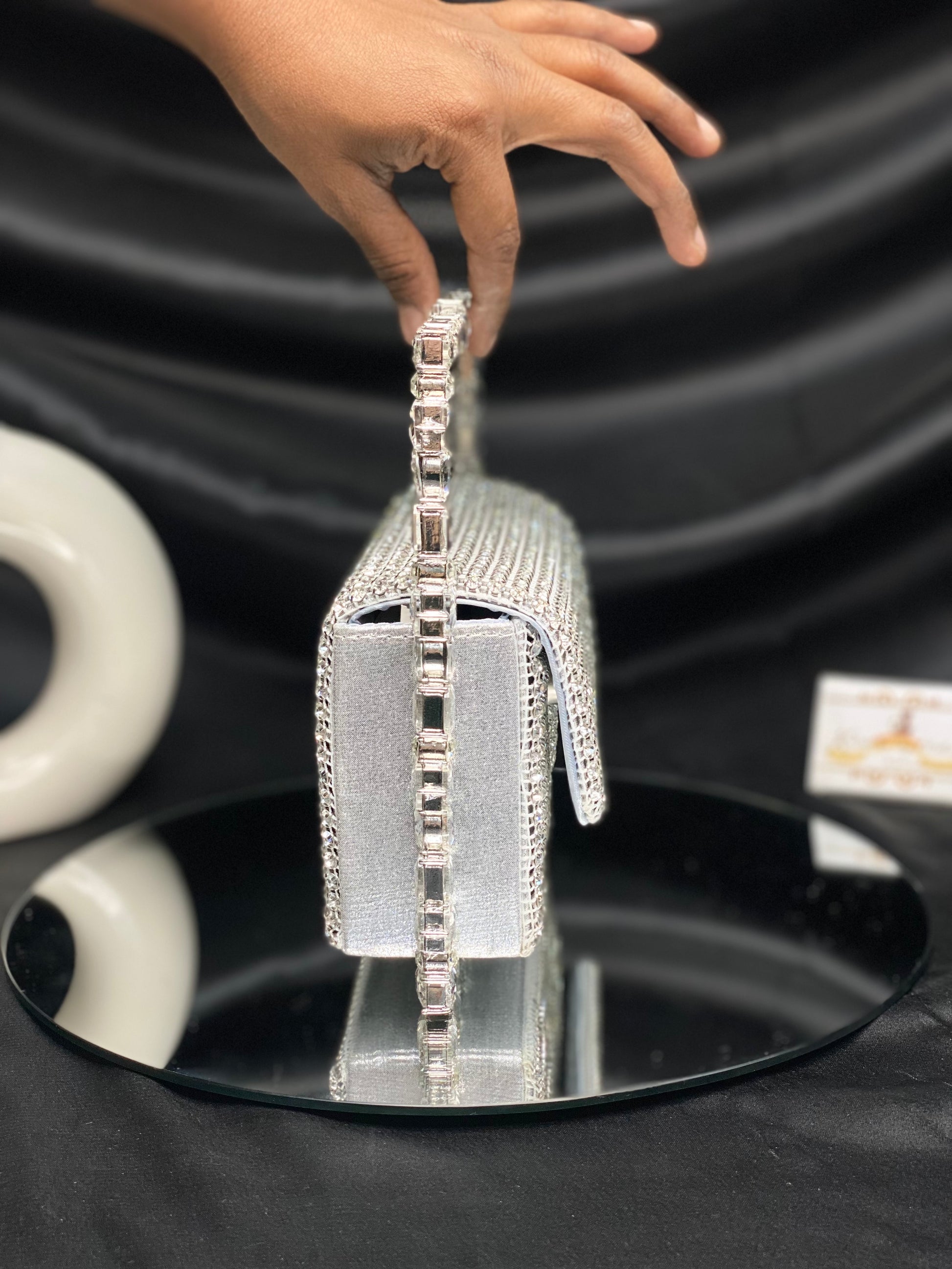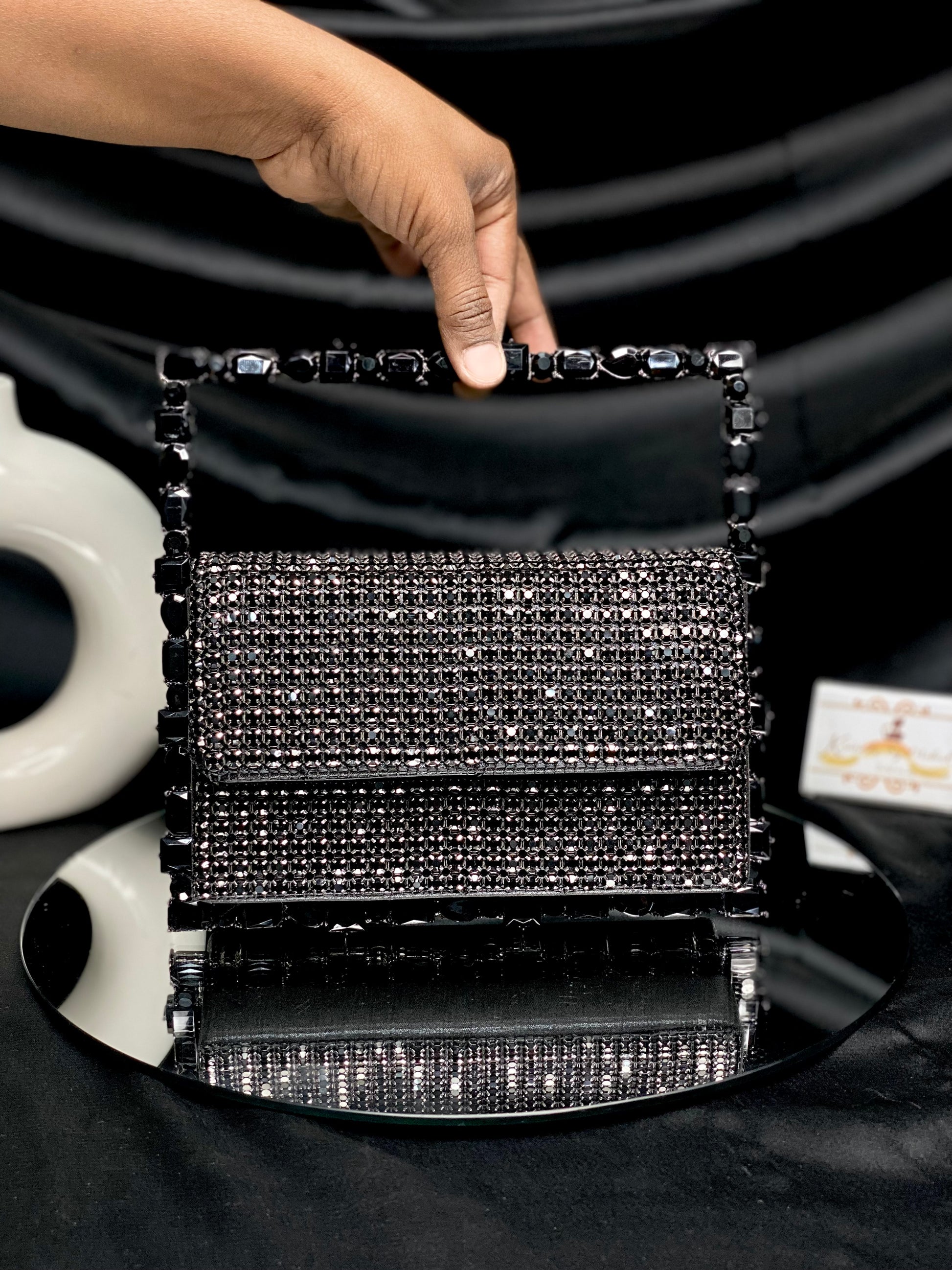 Elegance sparkles in every stitch, rhinestones whispering tales of glamour, carried by a handle adorned with diamond dreams.