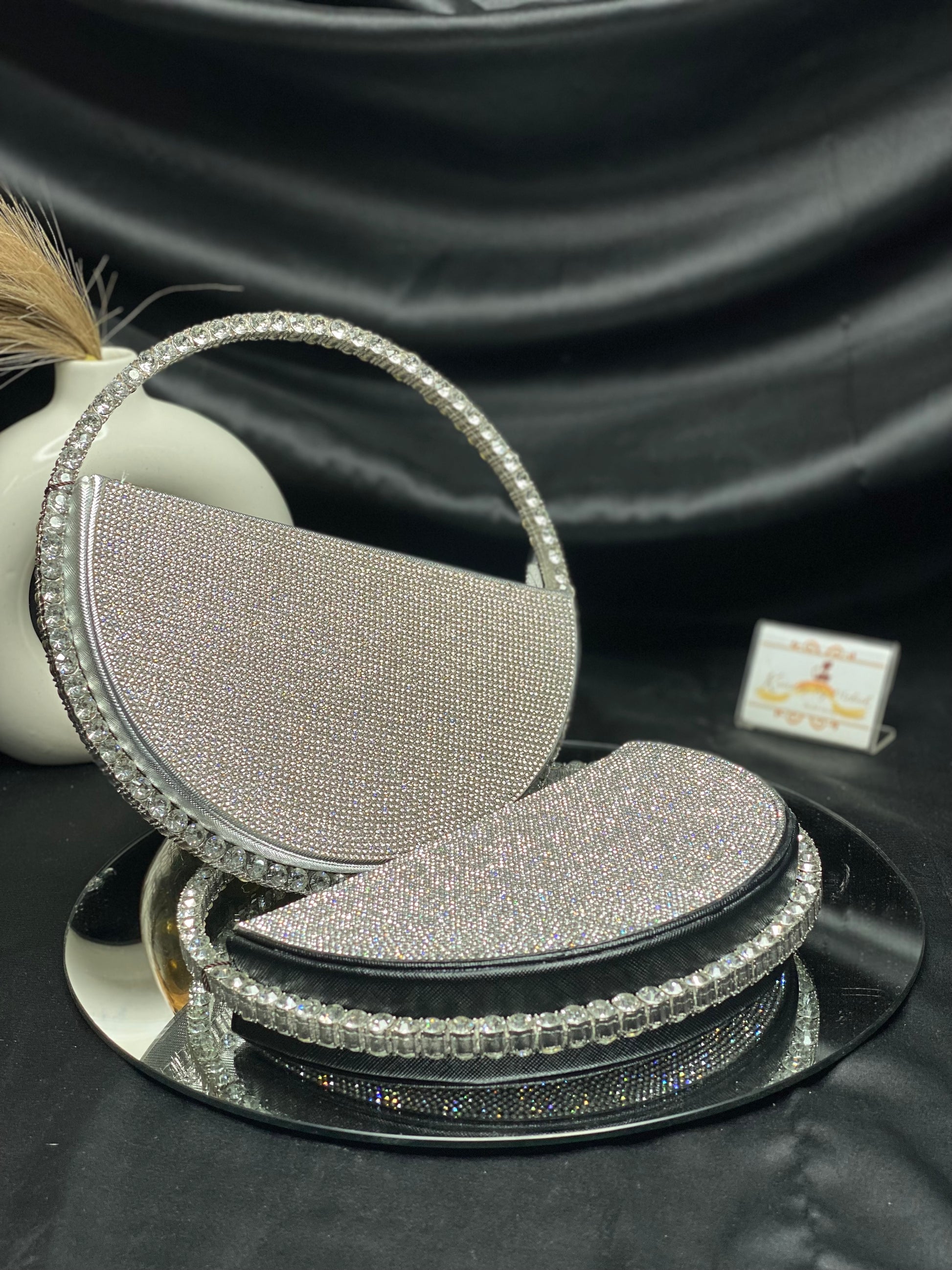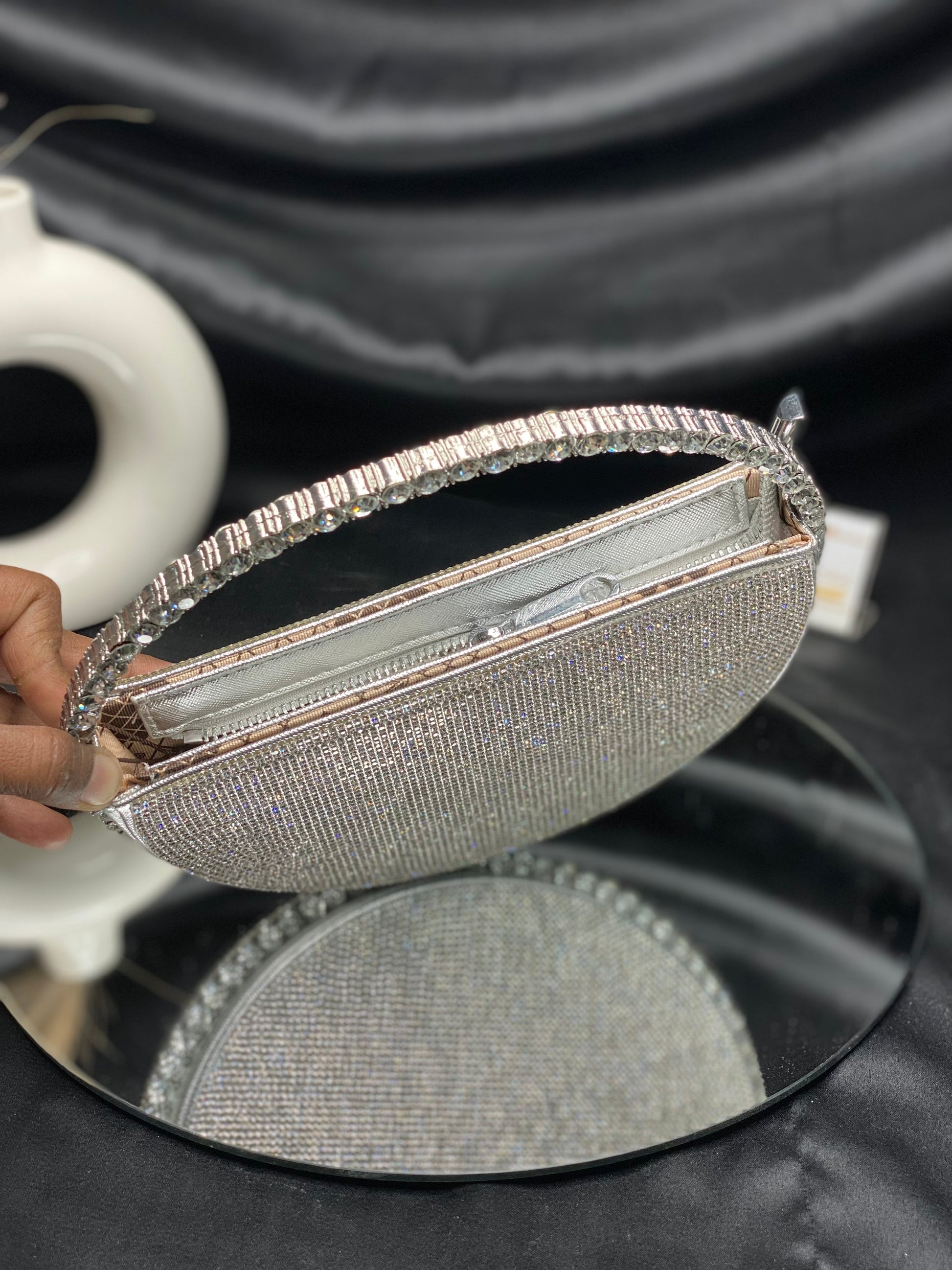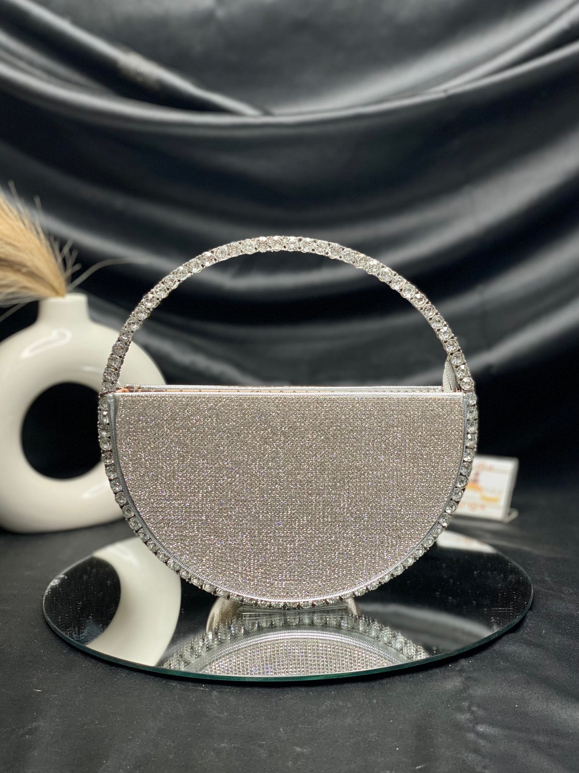 Introducing Glitter Charlie, a circle bag with a stunning glitter design and diamond stud handle. This handbag will make a statement and add a touch of sparkle to any outfit. Expertly crafted and unique, Glitter Charlie is perfect for any fashion-forward individual.