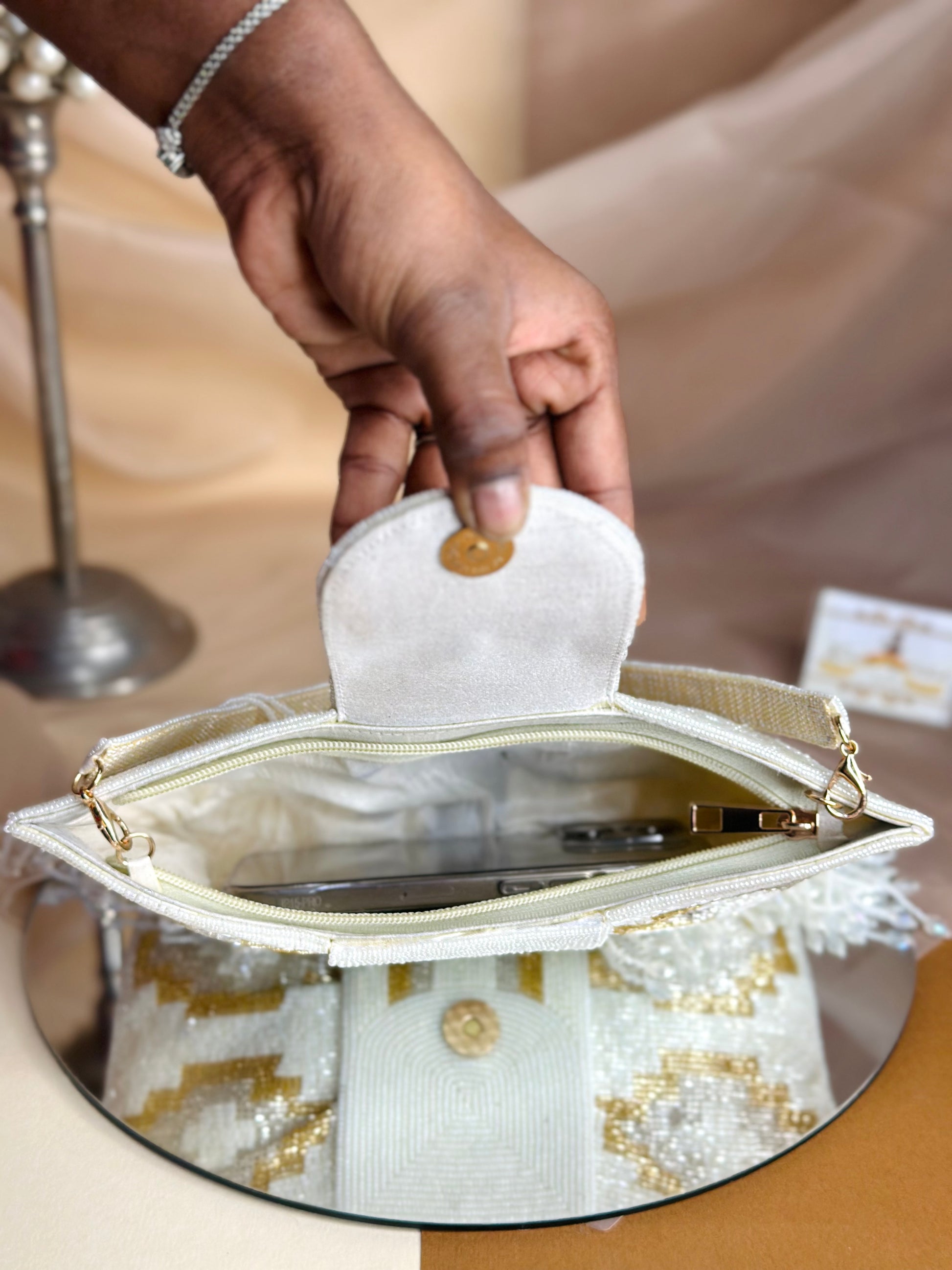 The Inayat Bag exemplifies refined craftsmanship with its gracefully sculpted silhouette and meticulously detailed embellishments. Each piece showcases intricate artisanal work that elevates everyday elegance. Constructed with premium materials, this sophisticated accessory seamlessly transitions from day to evening occasions. The thoughtfully engineered shape ensures both aesthetic appeal and practical functionality, making it an investment piece for the discerning collector who values quality and distinctive design.