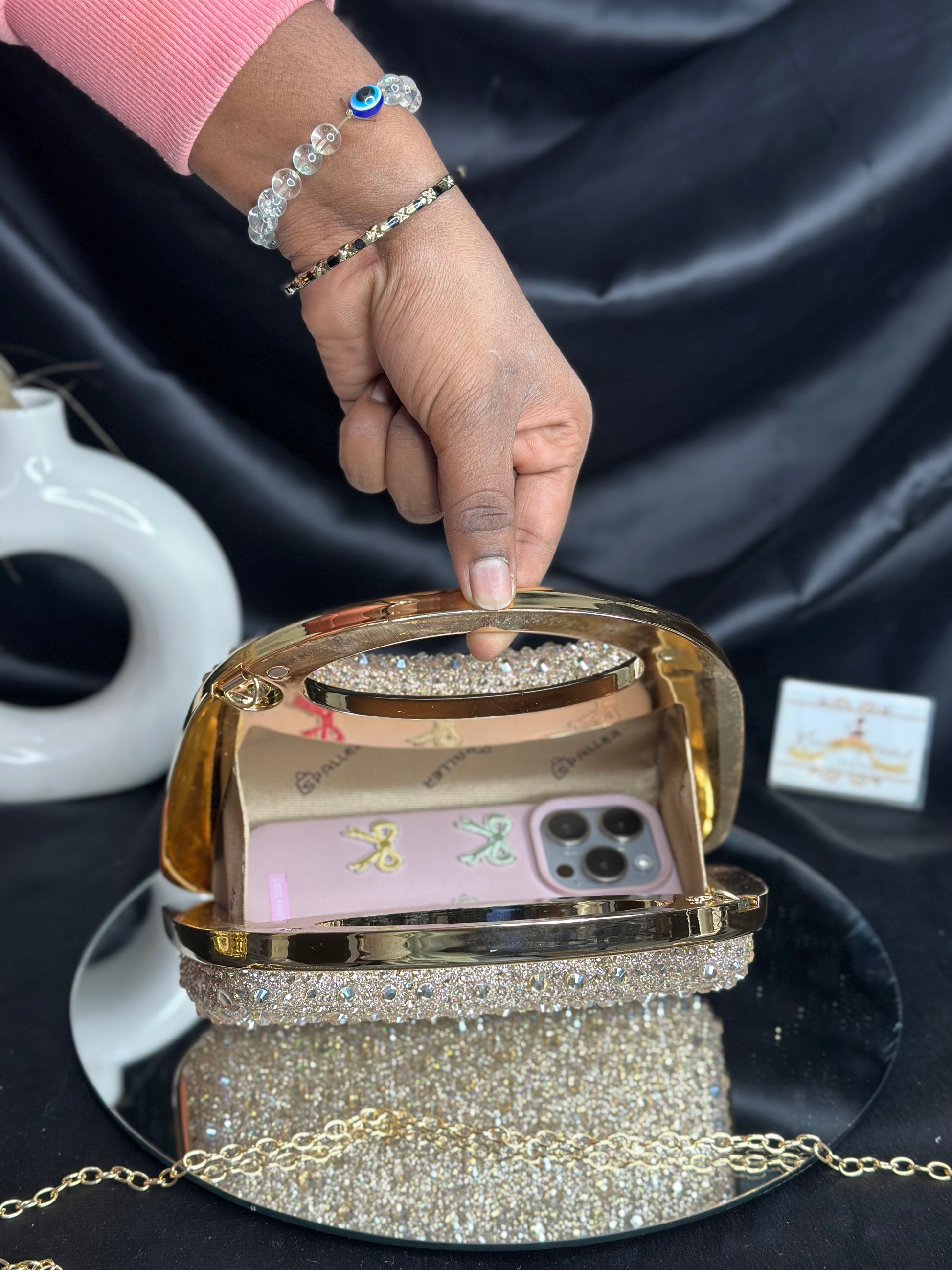 The Ivy Clutch combines understated elegance with eye-catching detail. Adorned with carefully placed shimmer and stone embellishments, this piece delivers premium aesthetics without the luxury price tag. Each stud is thoughtfully positioned to create visual interest while maintaining a refined silhouette. Perfect for evening occasions or adding a touch of sophistication to your everyday carry, this clutch proves that distinctive style doesn't require compromise. A versatile accessory that elevates any ensemble.