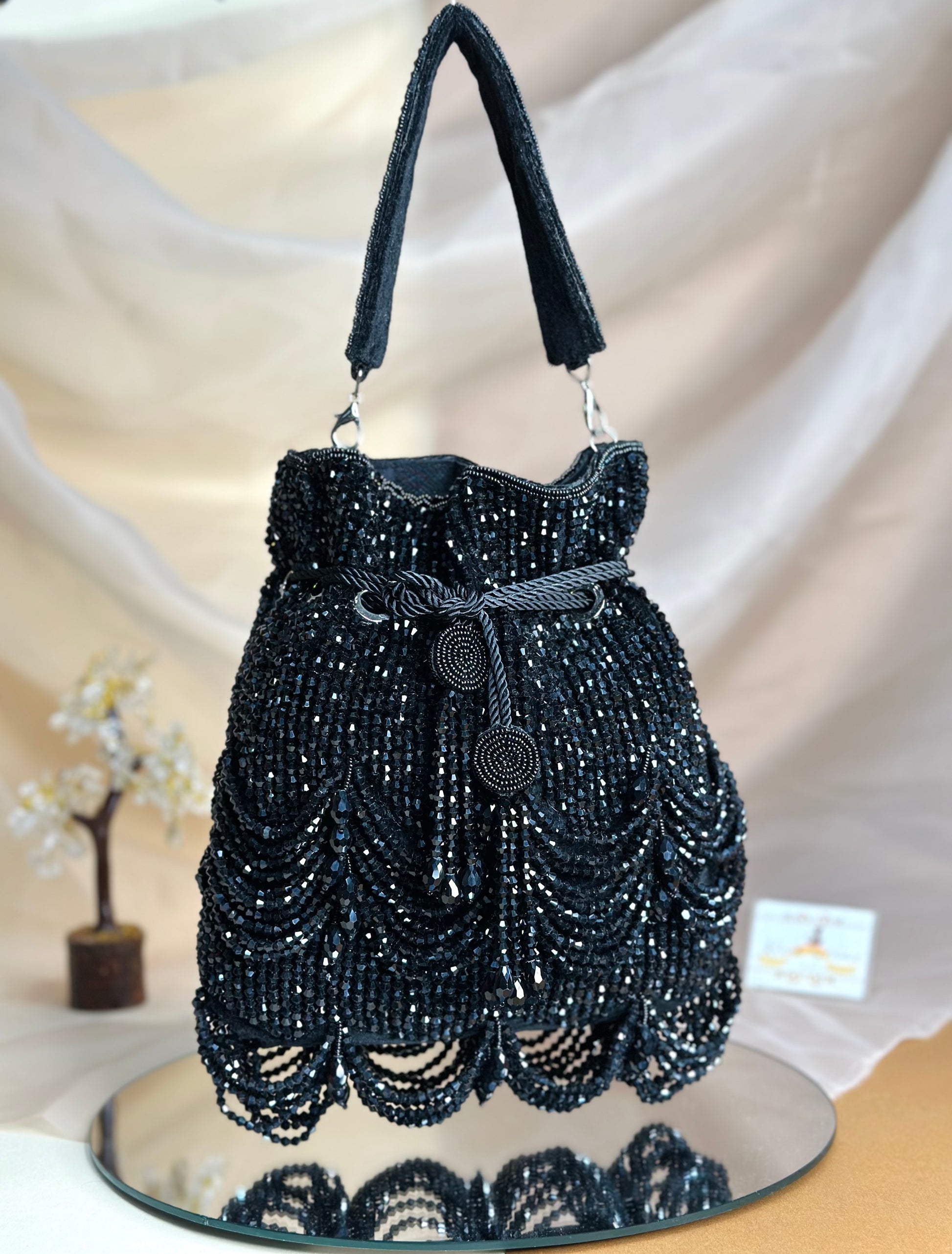 Outer Material: Embellished stones and tassels on Velvet