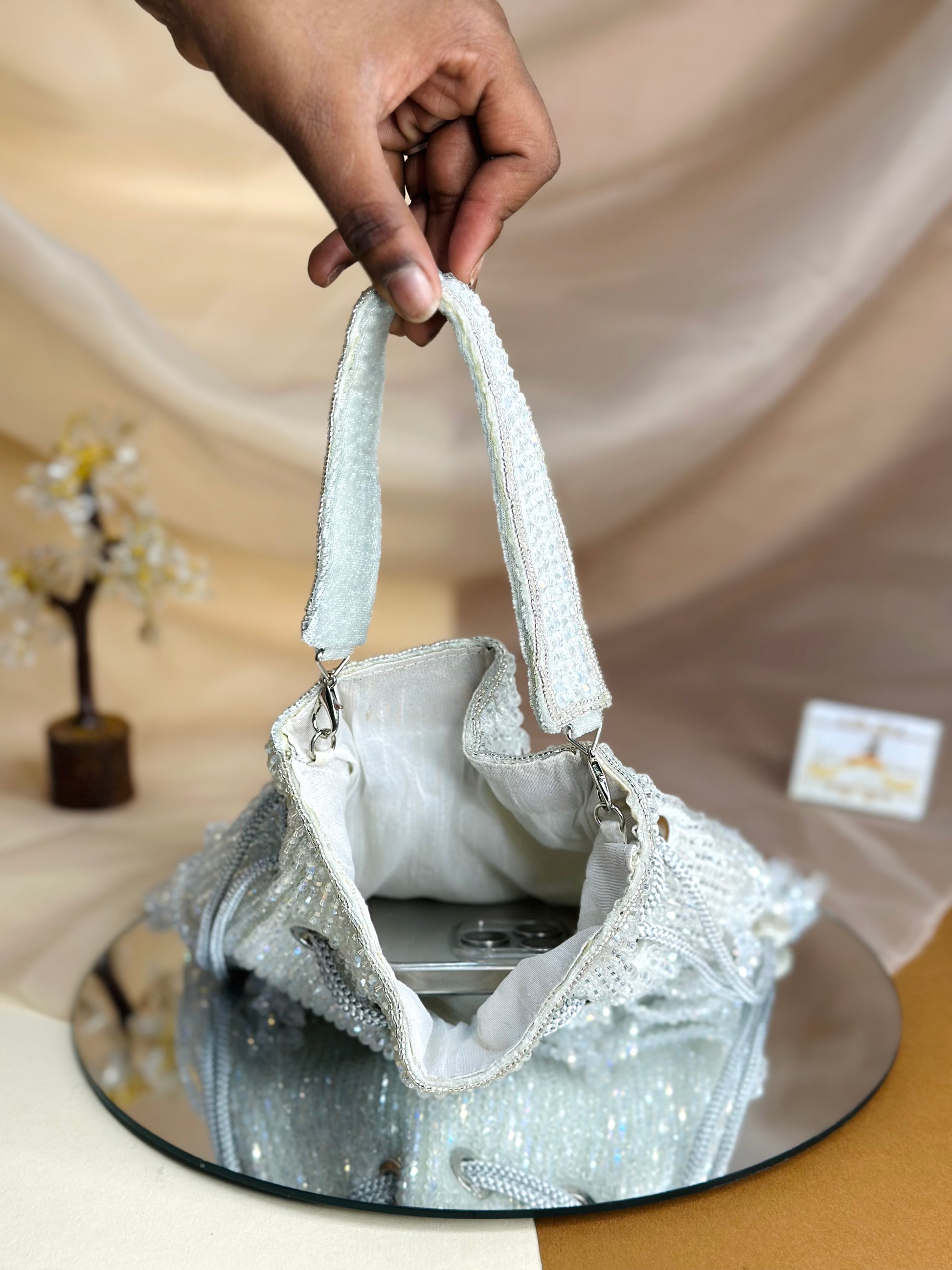 The Premium Arinya Potli combines refined craftsmanship with accessible luxury. This elegantly detailed potli bag features generous capacity, making it ideal for both everyday essentials and special occasions. The meticulous detailing showcases quality construction without the premium price tag, offering discerning customers exceptional value. Perfect for those seeking a sophisticated accessory that balances style, functionality, and affordability.