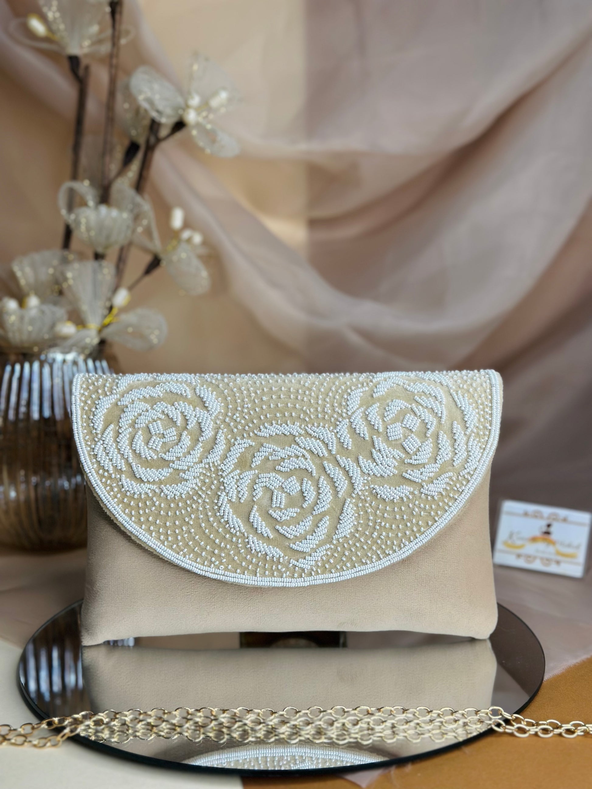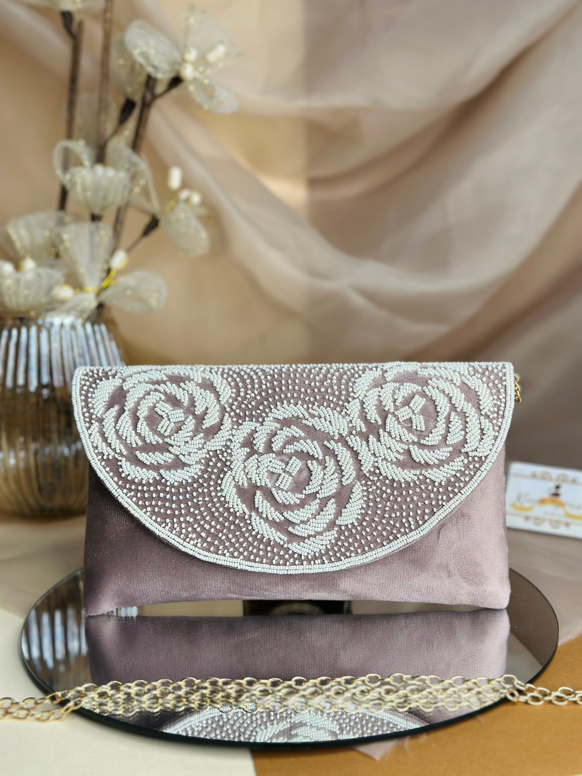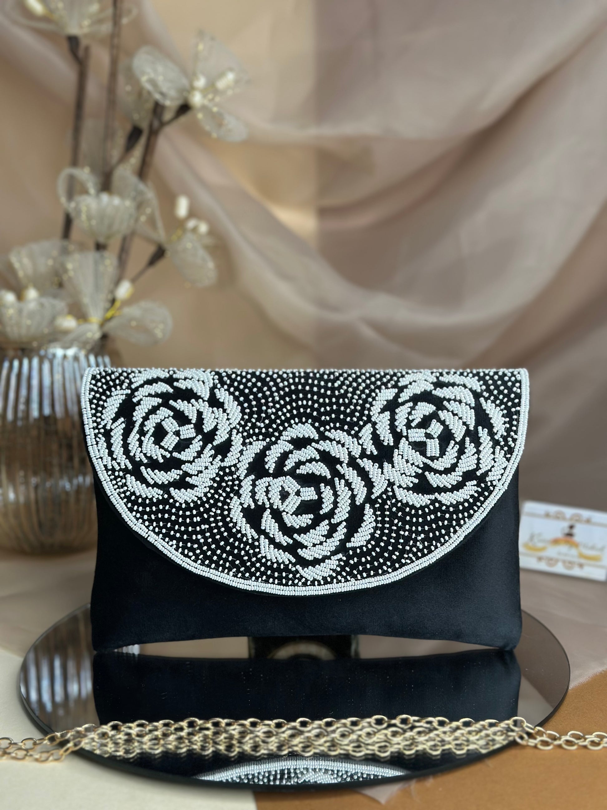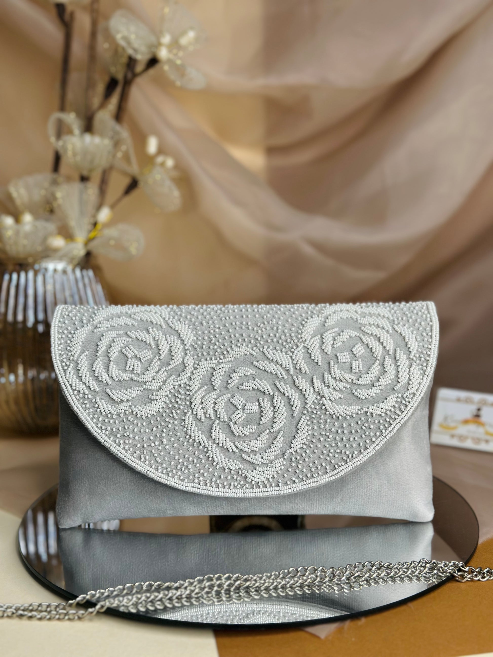 Elevate your accessory game with the Rosie Flap bag, featuring intricate rose detailing for a refined touch. The shimmering sequins catch light beautifully, making it ideal for evening events or special occasions. Compact yet spacious enough for essentials, its elegant design adds a sophisticated flair while delivering practical functionality. Perfect for those who appreciate meticulous craftsmanship paired with standout style.