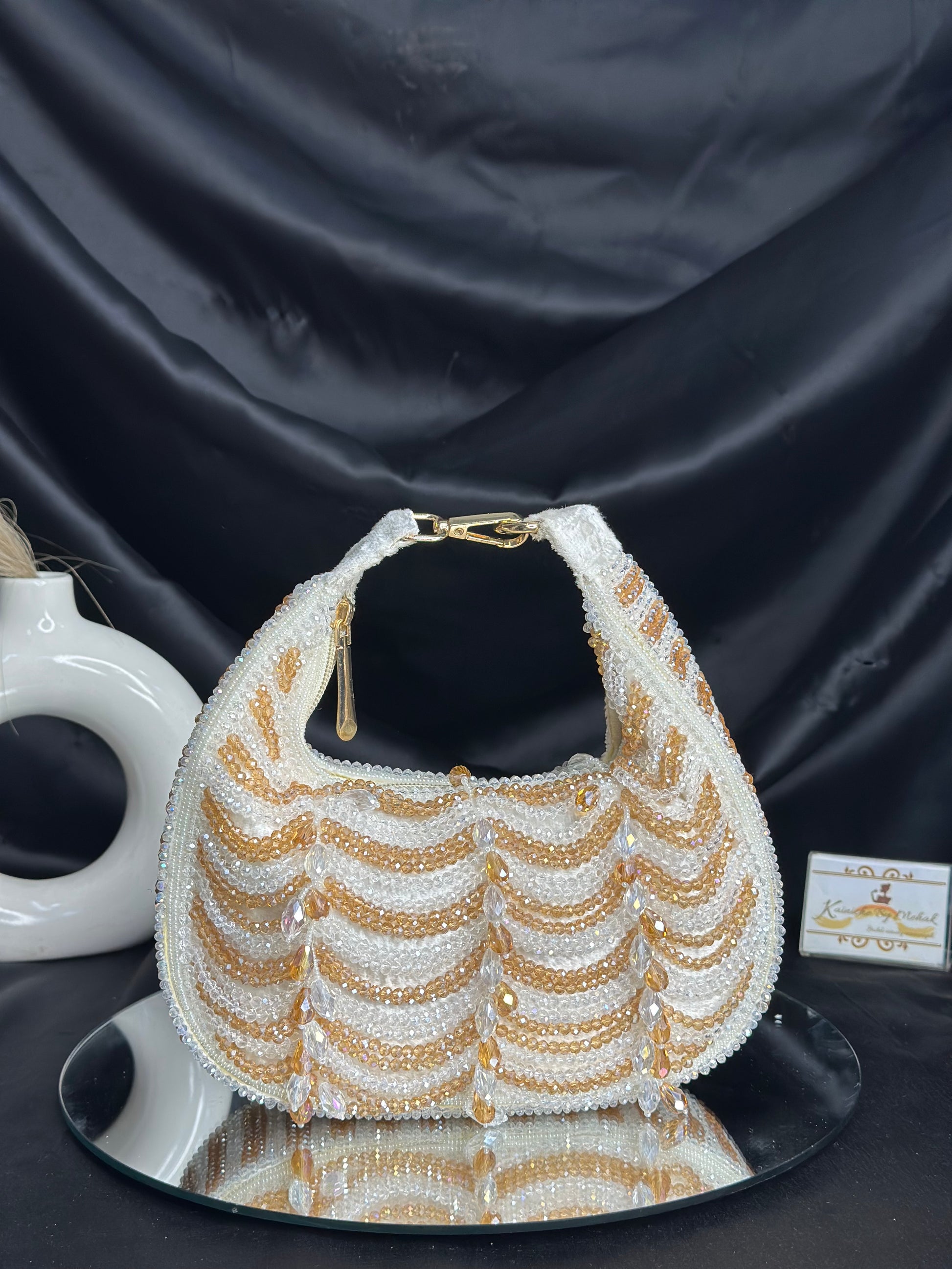 The Saaz Moon Bag combines celestial elegance with refined craftsmanship. Featuring a distinctive moon-shaped silhouette and adorned with a premium stone drop accent, this piece exemplifies sophisticated design. Meticulously crafted from high-quality materials, it delivers both visual impact and lasting durability. Perfect for those who appreciate distinctive accessories that elevate any ensemble with understated luxury and artistic flair.