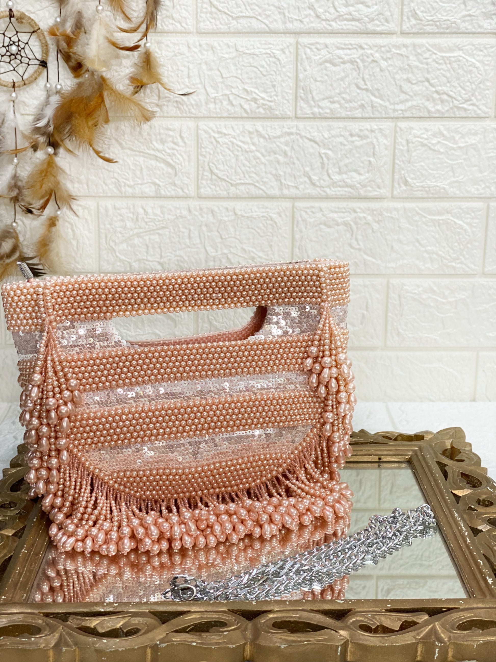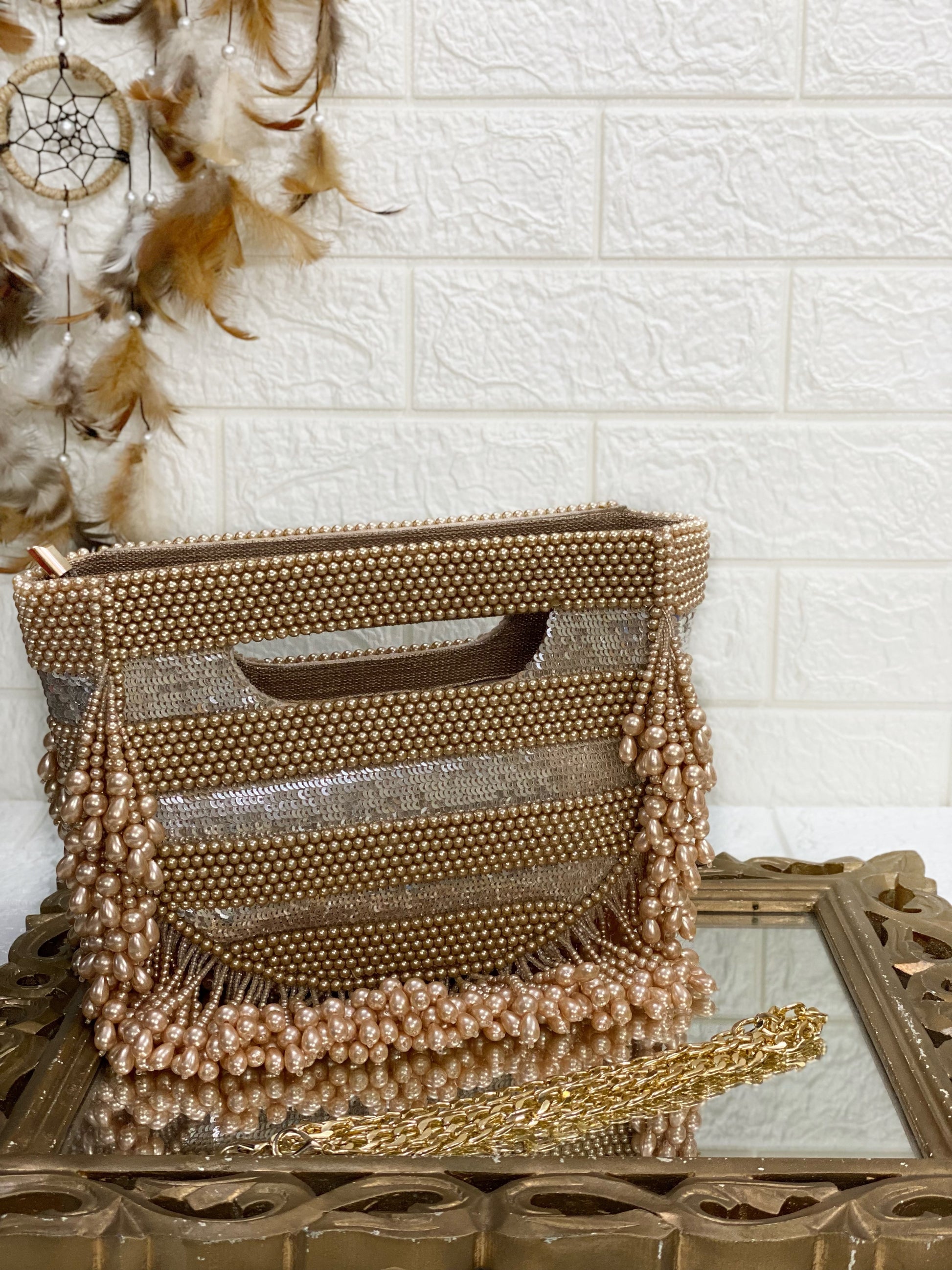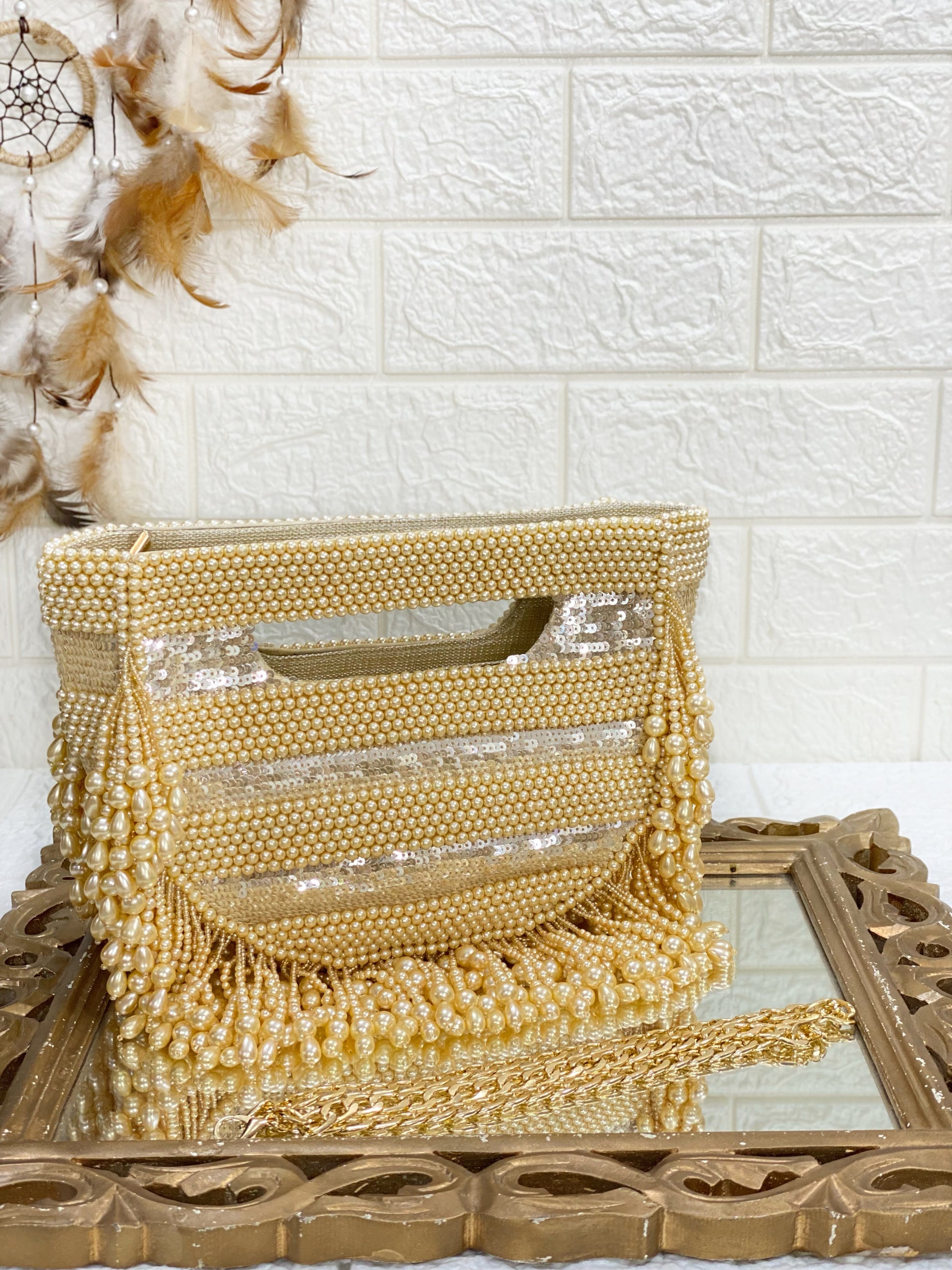 Expertly crafted and designed, the Sheryl Basket Bag is a must-have for any fashion-forward individual. Its unique basket shape combined with embellished sequins, pearls, and tassels make a luxurious statement. Plus, its spacious interior allows for convenient storage of all your essentials. Elevate your style with this elegant and functional bag.