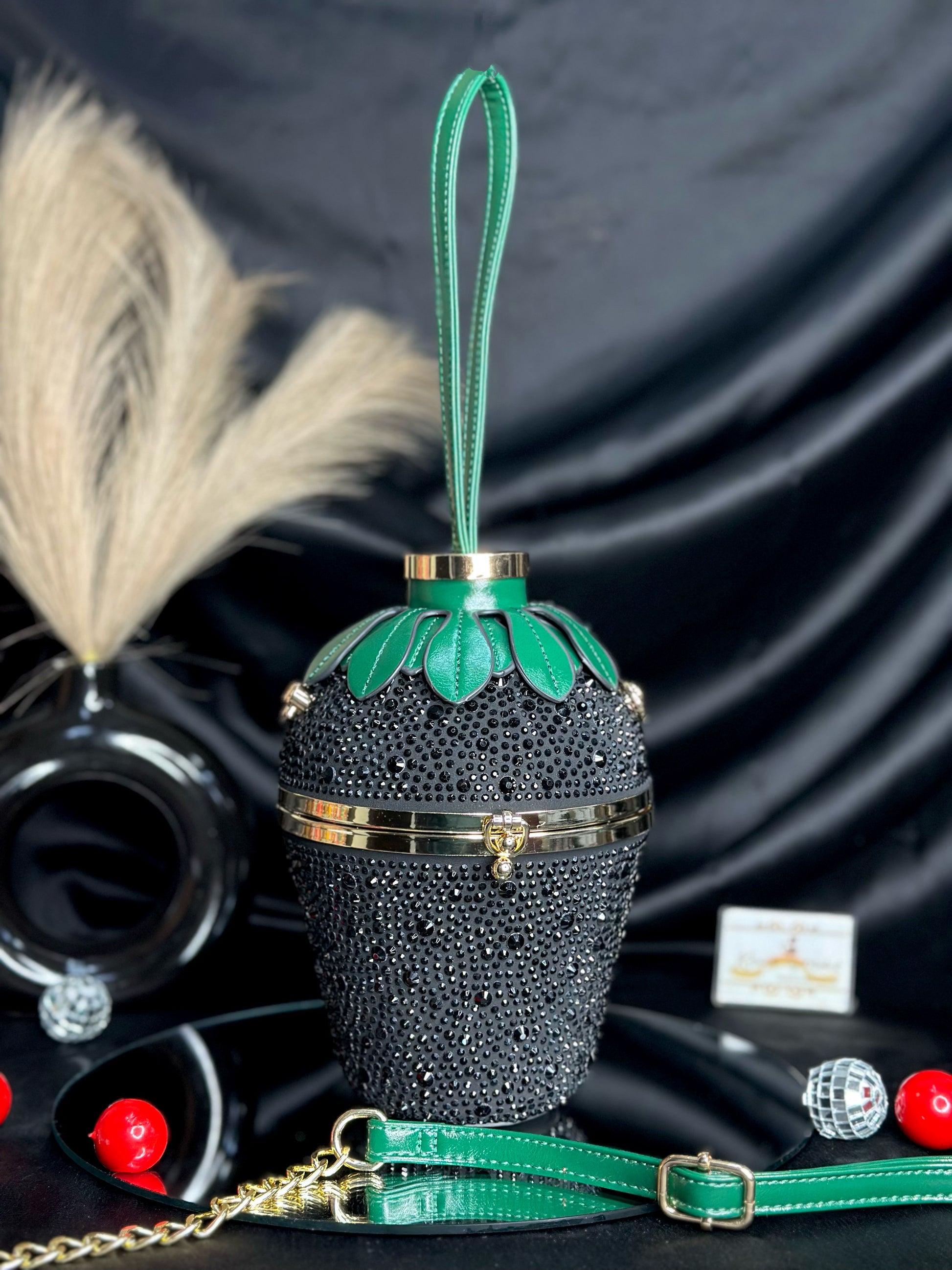 Strawberry Crystal Bag Crafted with meticulous attention to detail, this distinctive strawberry-shaped bag combines aesthetic charm with practical functionality. The premium construction ensures durability and longevity, while its generous interior capacity accommodates your daily essentials with ease. The unique silhouette makes a statement piece that elevates any ensemble, offering both style and substance for the discerning collector.